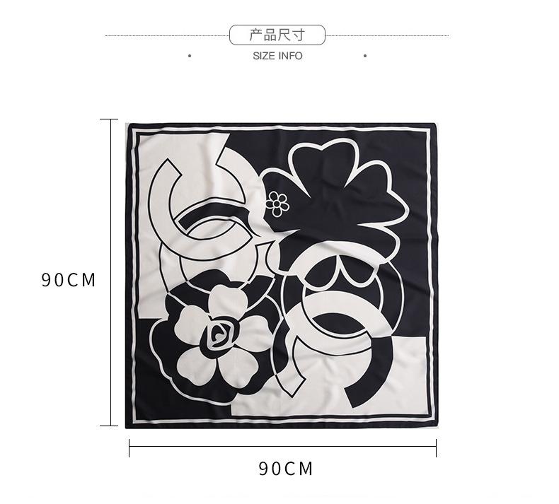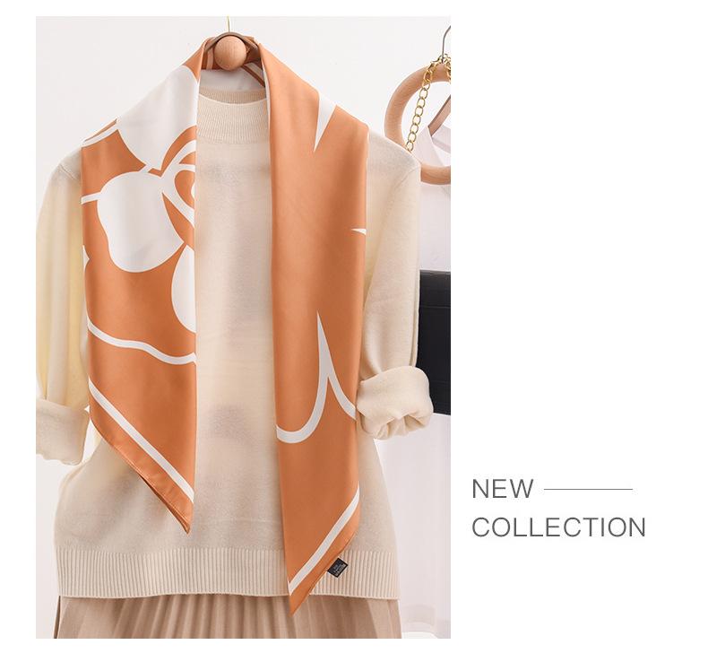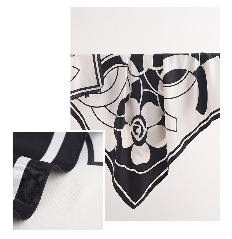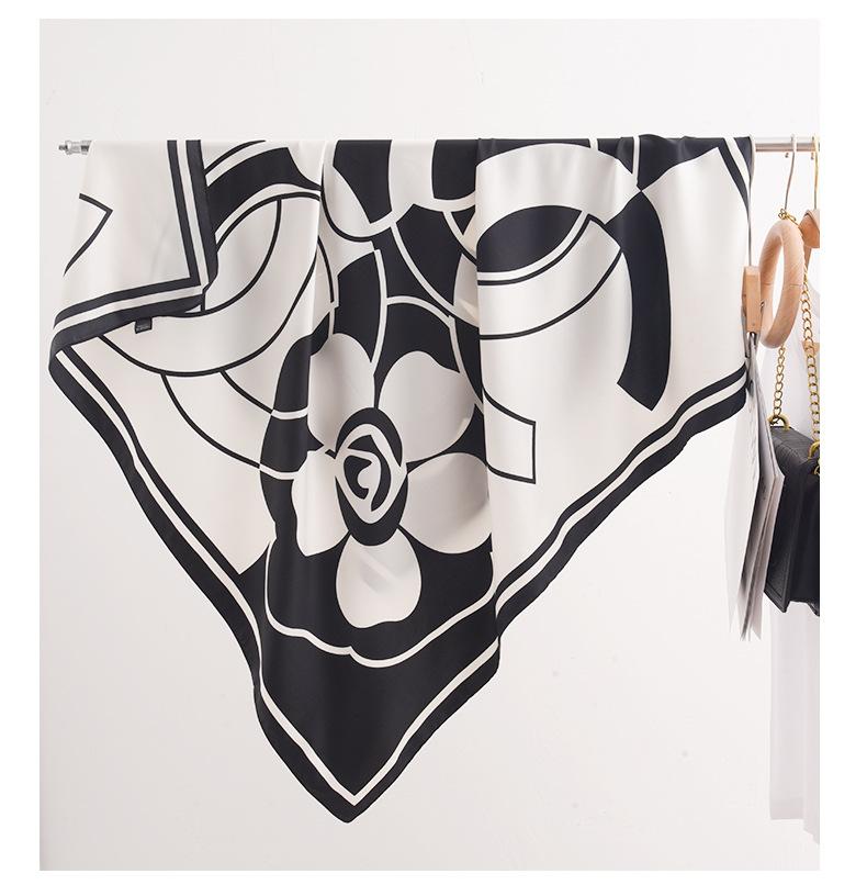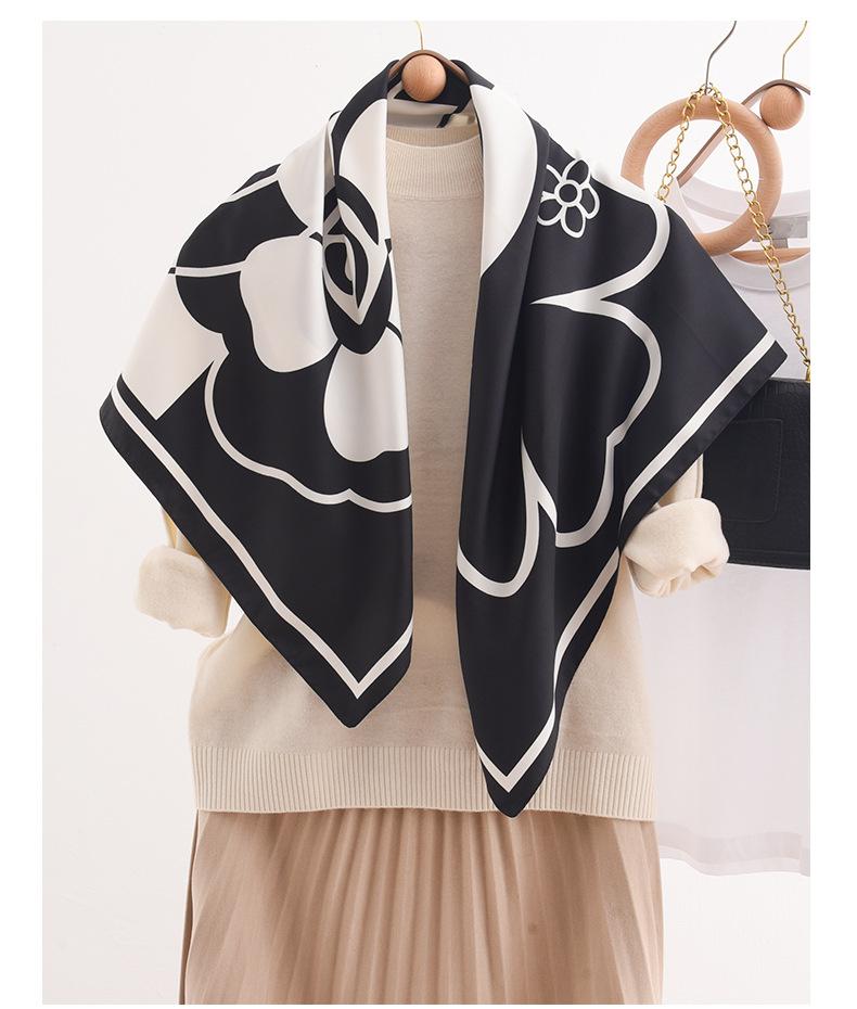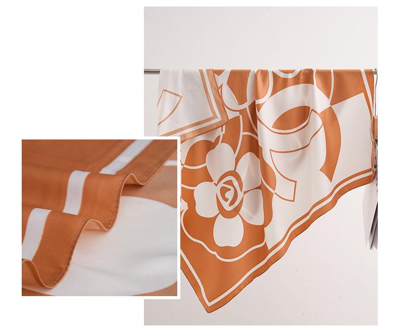 Primavera e verão novo estilo impresso lenço de seda camélia 90 grande lenço quadrado atacado senhoras proteção solar lenço de seda acessórios