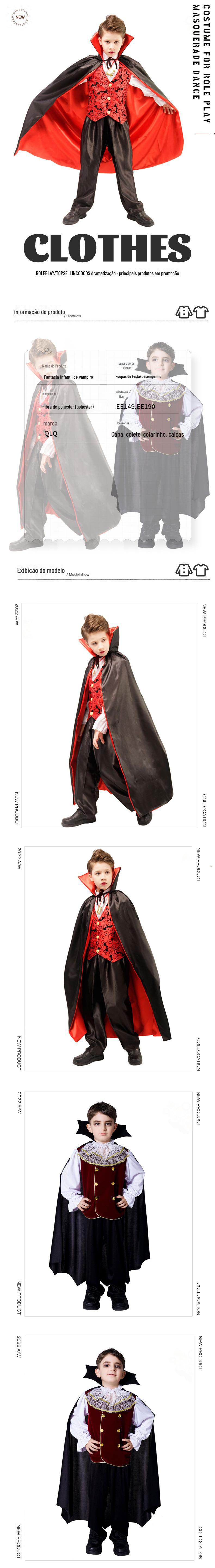 Fantasia Infantil de Terror para Halloween Fantasia de Máscara Cosplay Fantasia de Palco Fantasia Menino Vampiro