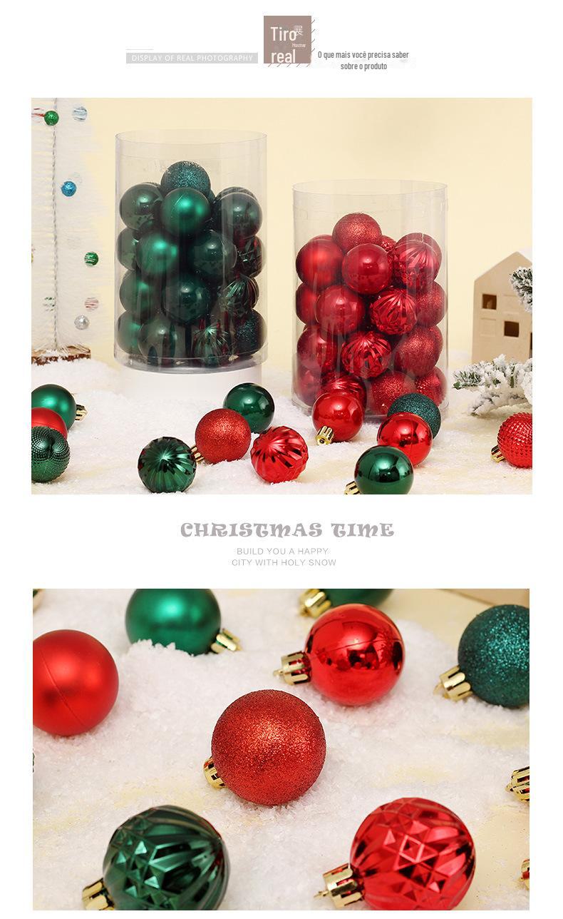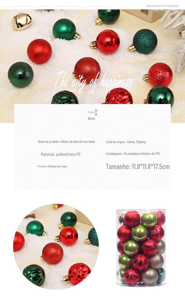 Novas decorações de Natal transfronteiriças 4cm/34PCs tubo especial em forma de bola de Natal conjunto pingente de árvore de Natal