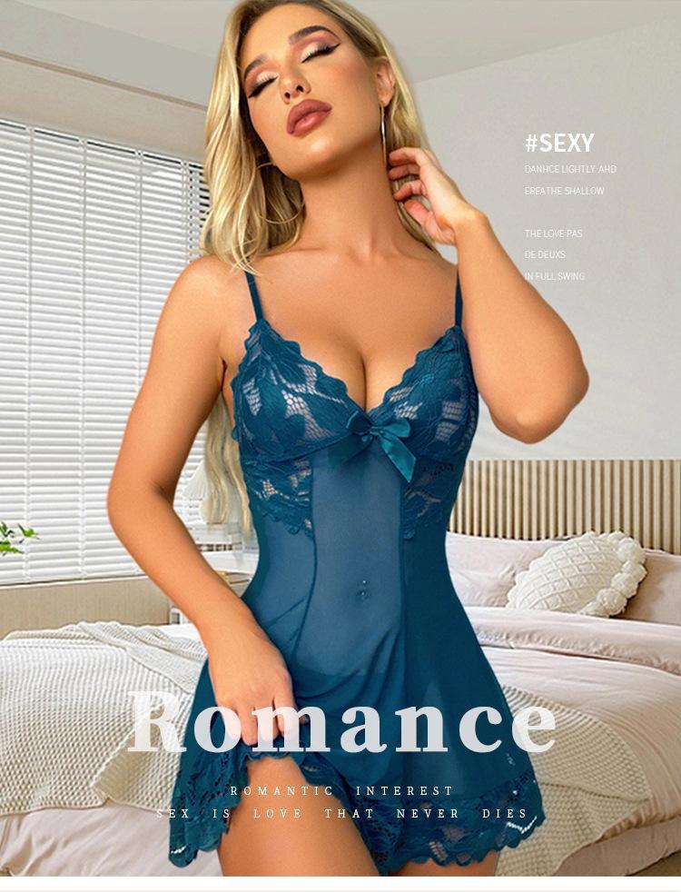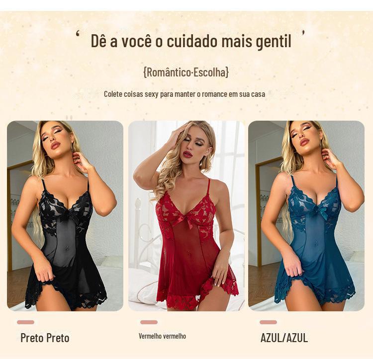 Comércio Exterior Transfronteiriço Lingerie Nova Sexy Europeia e Americana Renda Sexy Feminina Malha Liga Camisola Roupa de Casa Conjunto Sexy