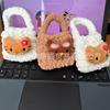 Bonito de pelúcia de couro preto gato resistente a quedas fone de ouvido Caso Protetor Caso Armazenamento de cabo de dados Bolsa Pelúcia Mini Bolsa de moedas