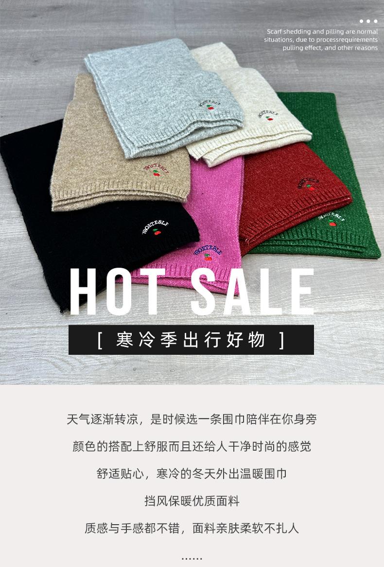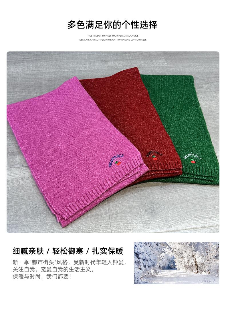 Outono e Inverno Estilo Coreano Lã Padrão Bordado Ins Versátil Cor Pura Espessado Quente Cachecol Cachecol de Pescoço Atacado