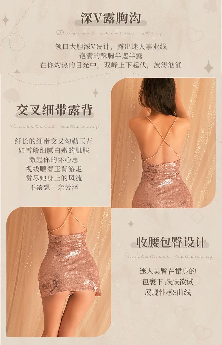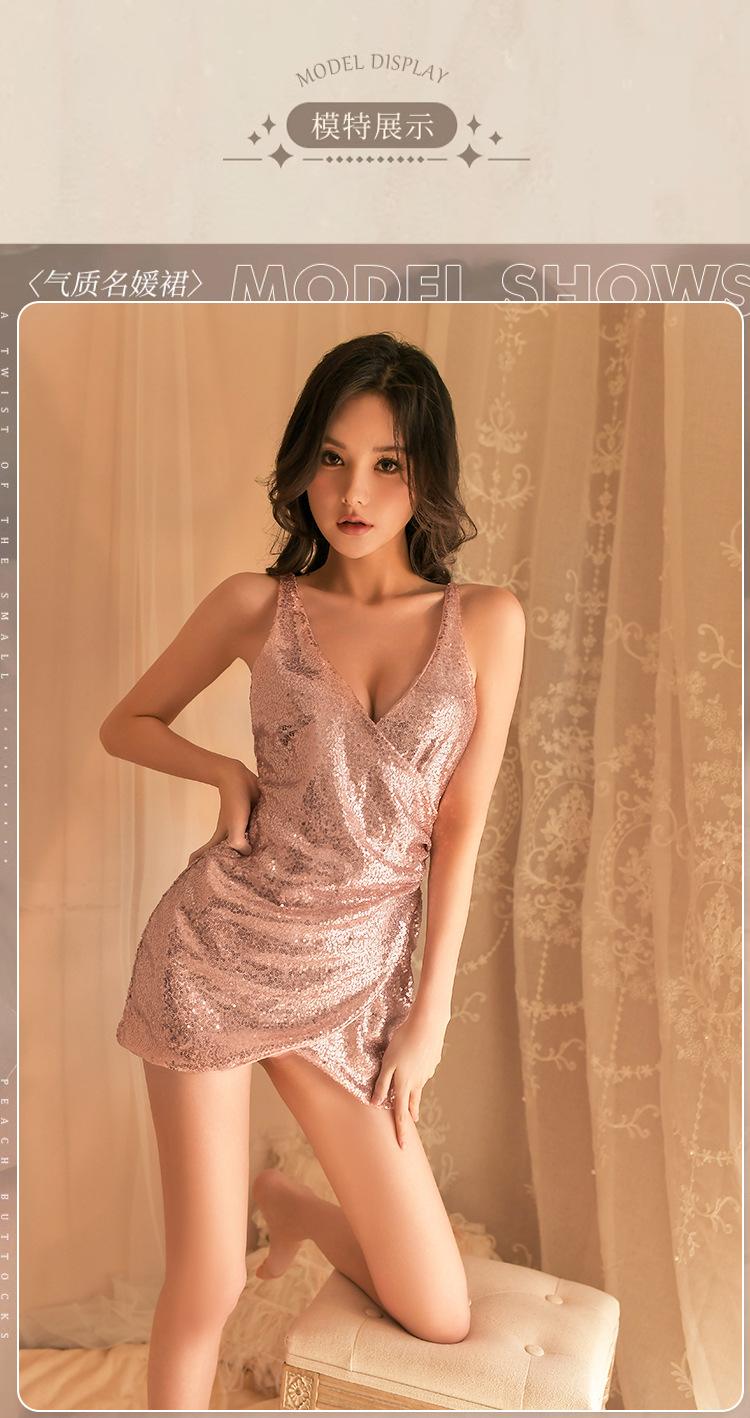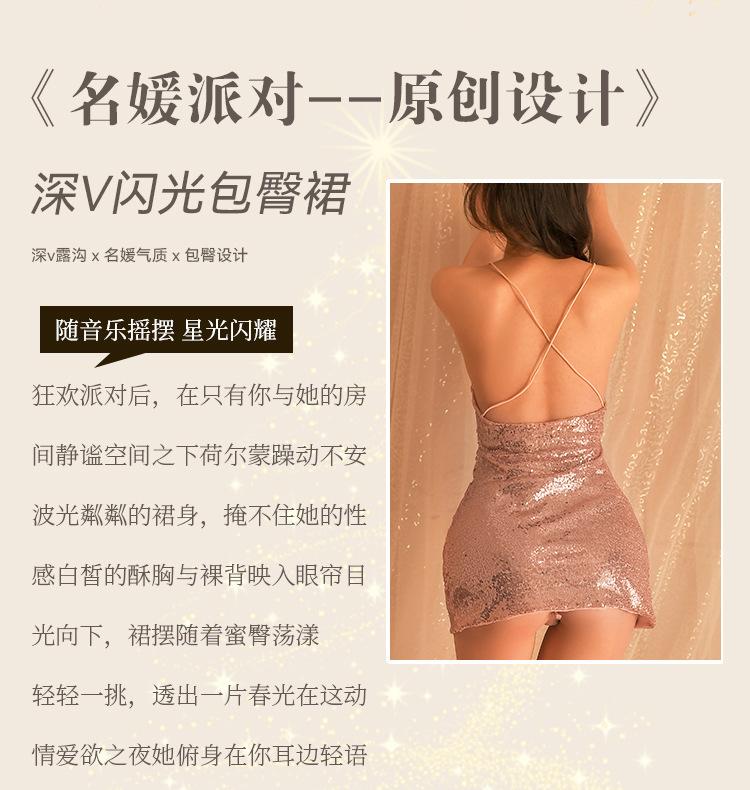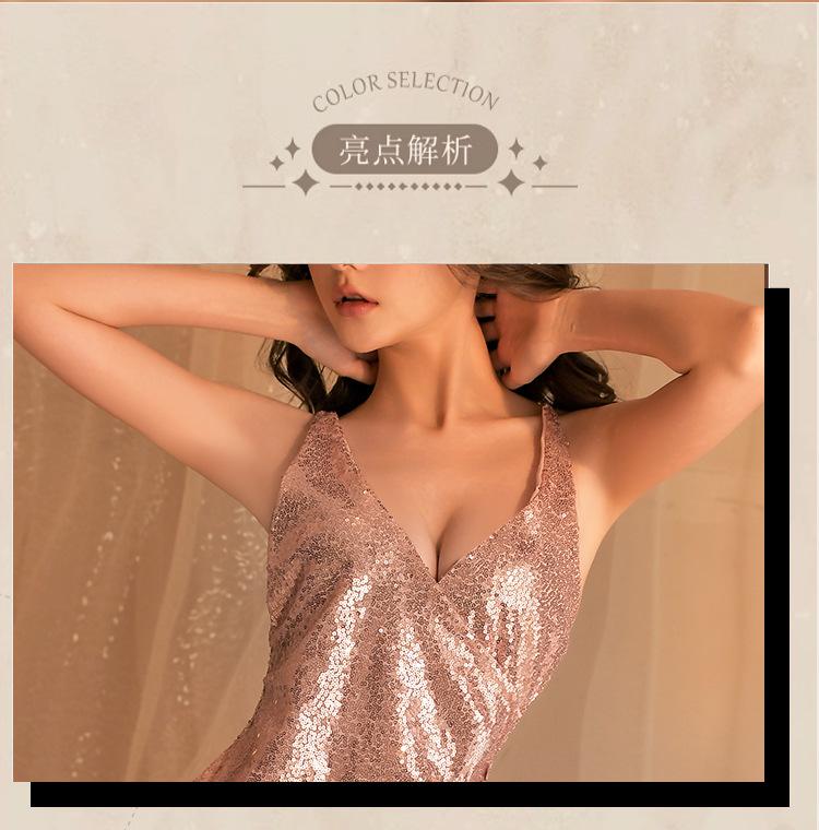 Noite ouvindo fragrância novo pijama sexy mulher boate fina brilhante lantejoulas saia quadril saia profunda V Orvalho tentação lingerie sexy