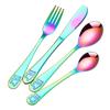 [O conjunto de facas infantis inclui]: faca infantil, garfo infantil, colher infantil, pauzinhos de treinamento. O conjunto de talheres infantis contém pauzinhos infantis convenientes, permitindo que as crianças se divirtam usando os pauzinhos e saboreiem sushi, bolinhos de arroz e outras iguarias de diferentes países de forma mais conveniente.