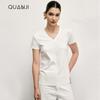 Blusa de seda pesada de amoreira com manga curta, nova moda verão 2024, camisa de seda com decote em V floral para atacado