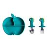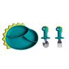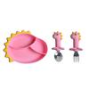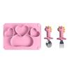 Prato de Jantar de Silicone Mais Vendido Transfronteiriço Grau Alimentício para Bebês Tigela com Ventosa Compartimento Integrado Conjunto de Talheres Infantis Atacado