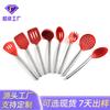 Conjunto de utensílios de cozinha de silicone personalizado de 8 peças com alça de aço inoxidável, conjunto de utensílios de cozinha de silicone, espátula de cozinha, colher de silicone para cozinhar