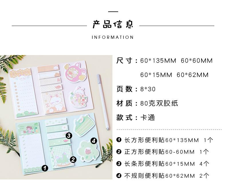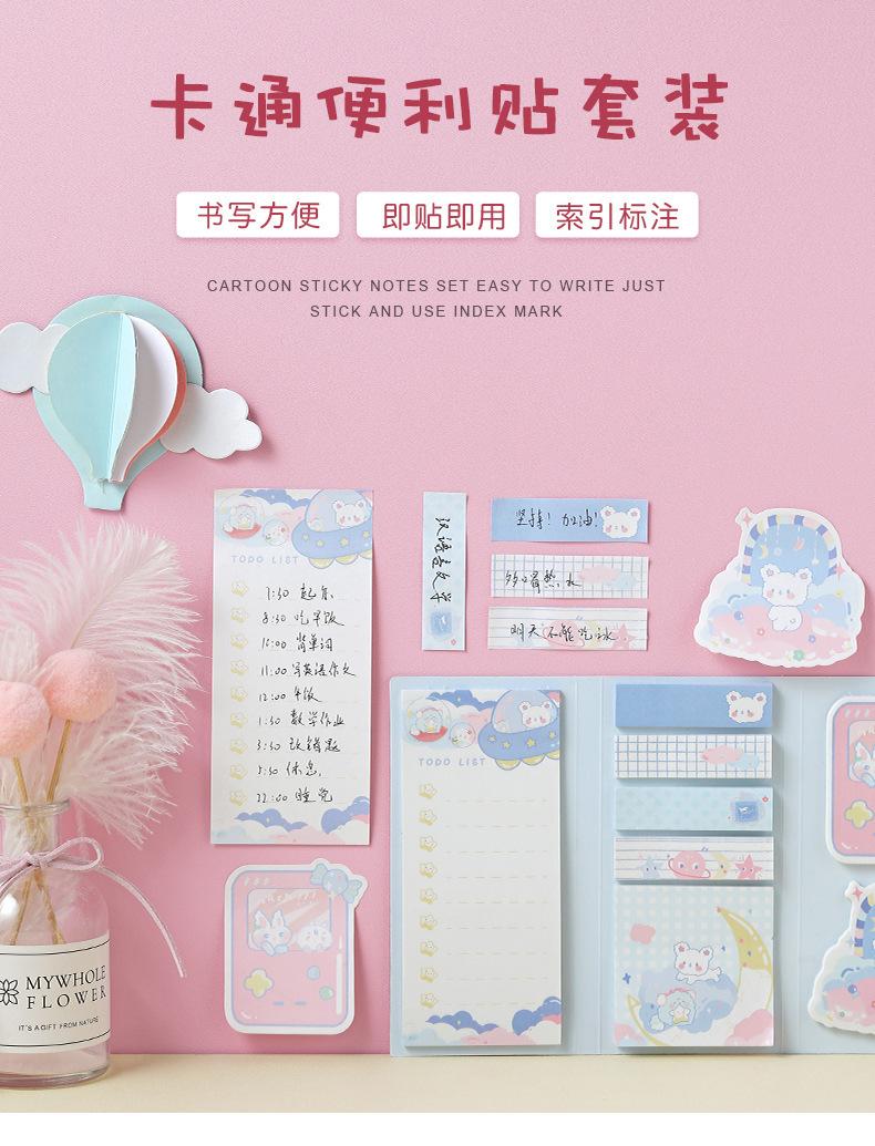 Bloco de Notas Post-It Personalizável Papel Adesivo Estudante Criativo Desenho Animado Conjunto de Notas Rasgável Portátil