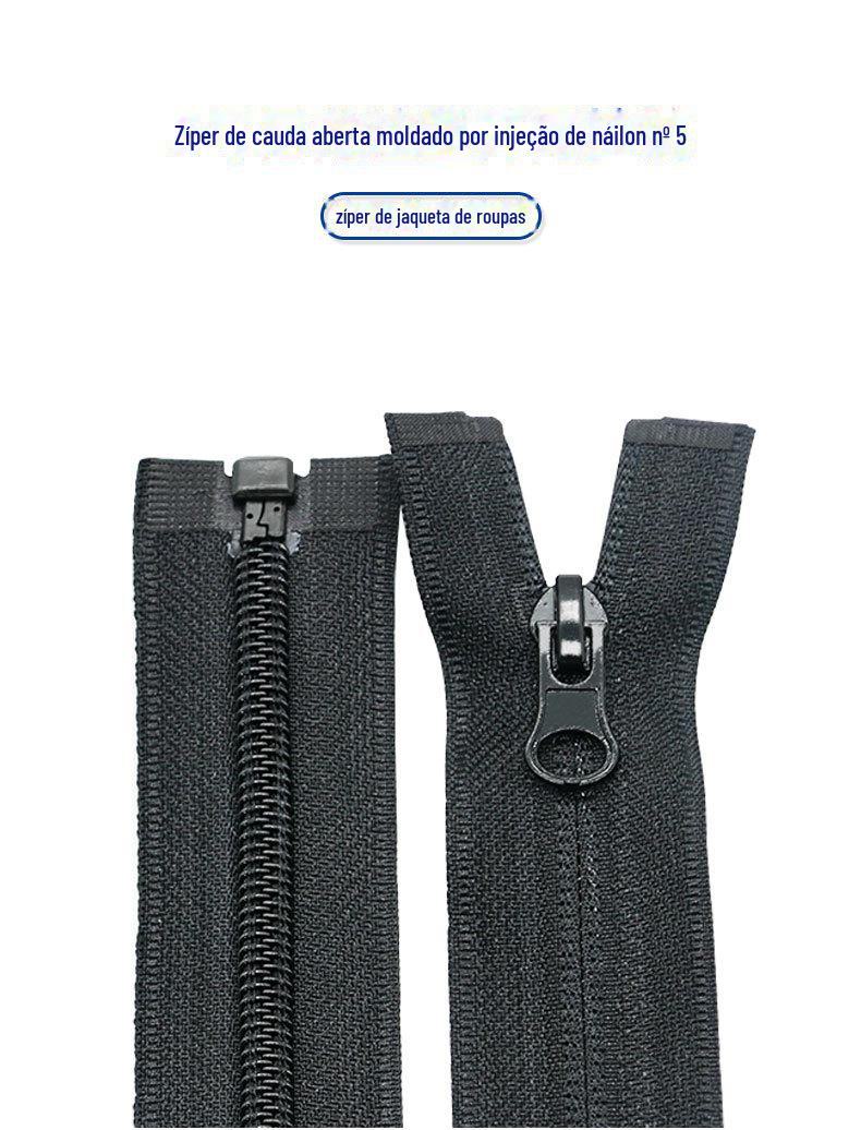 Fábrica por atacado No.5 Nylon injeção moldagem reverso desgaste aberto cauda zíper bebê roupa protetor solar casaco preto zíper