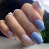 Simples Solid Color Fresh Blue Nail Art Europeu e Americano Médio comprimento curvo Corrugated Ribbon False Nail Light Luxury Wear Armor