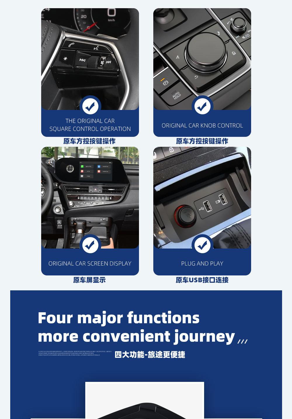 Four-em-um carro original com fio para o módulo sem fio carplay interconexão Apple Carplay caixa Android AUTO