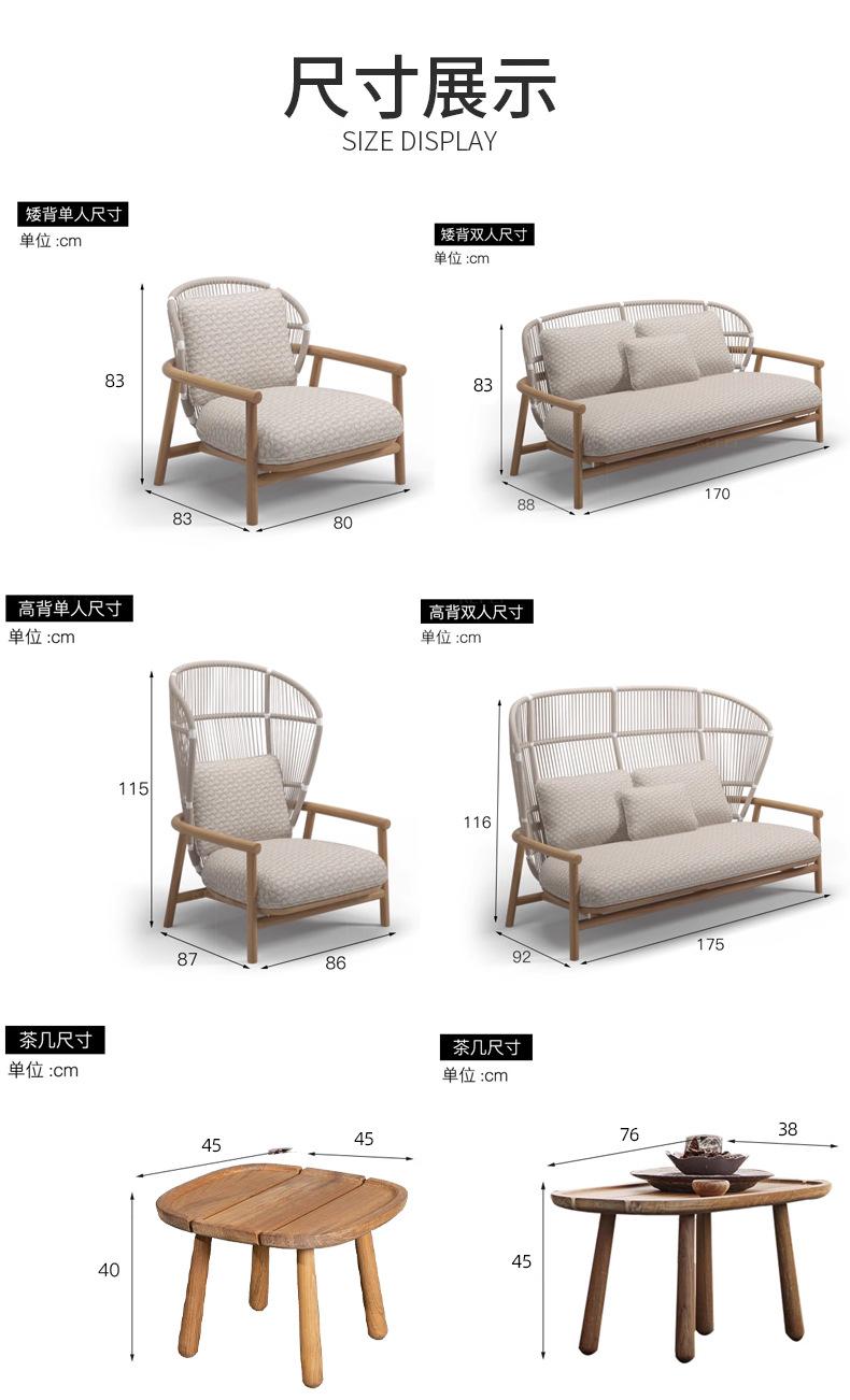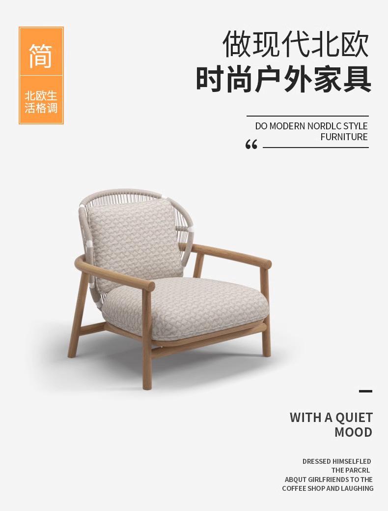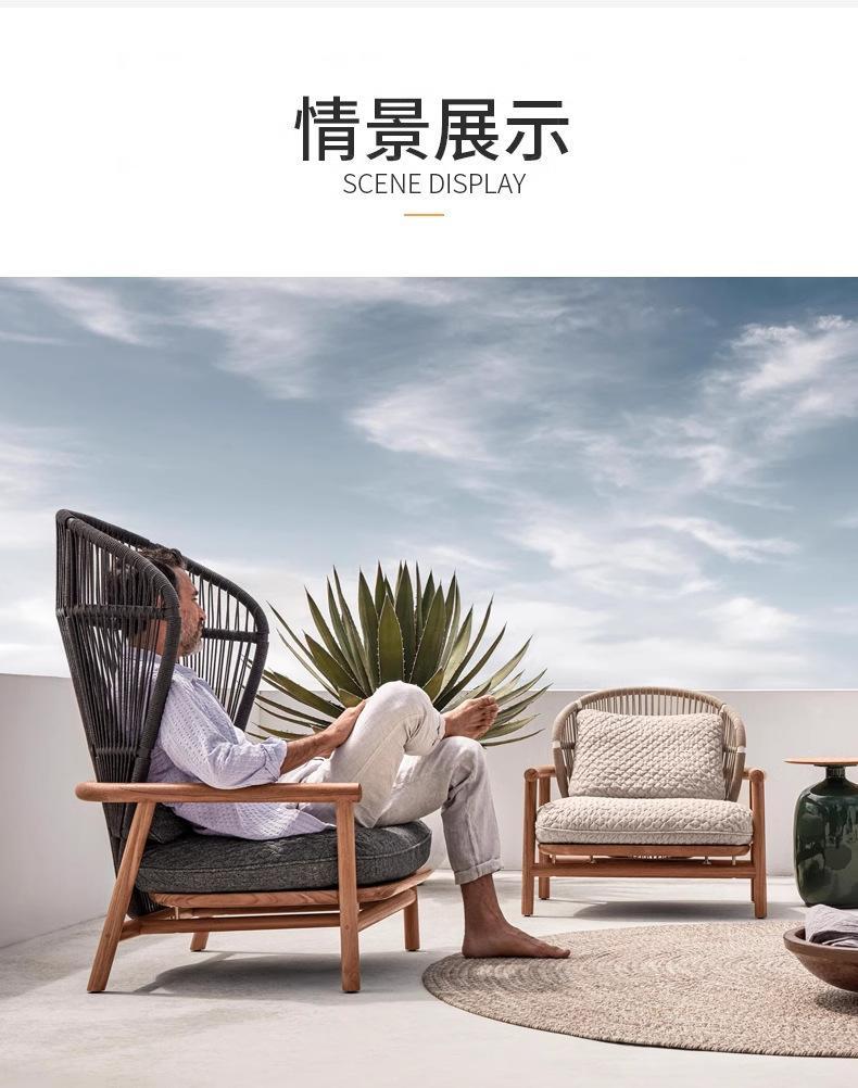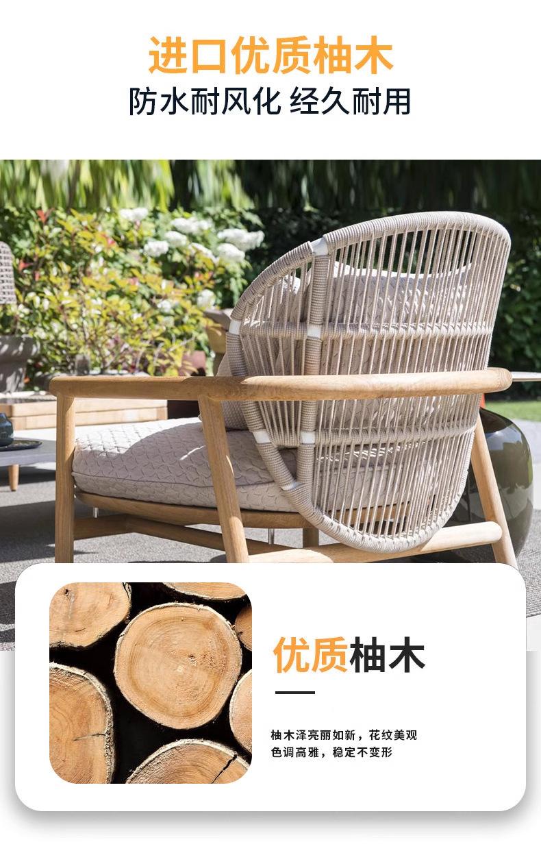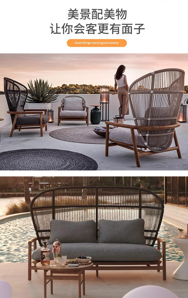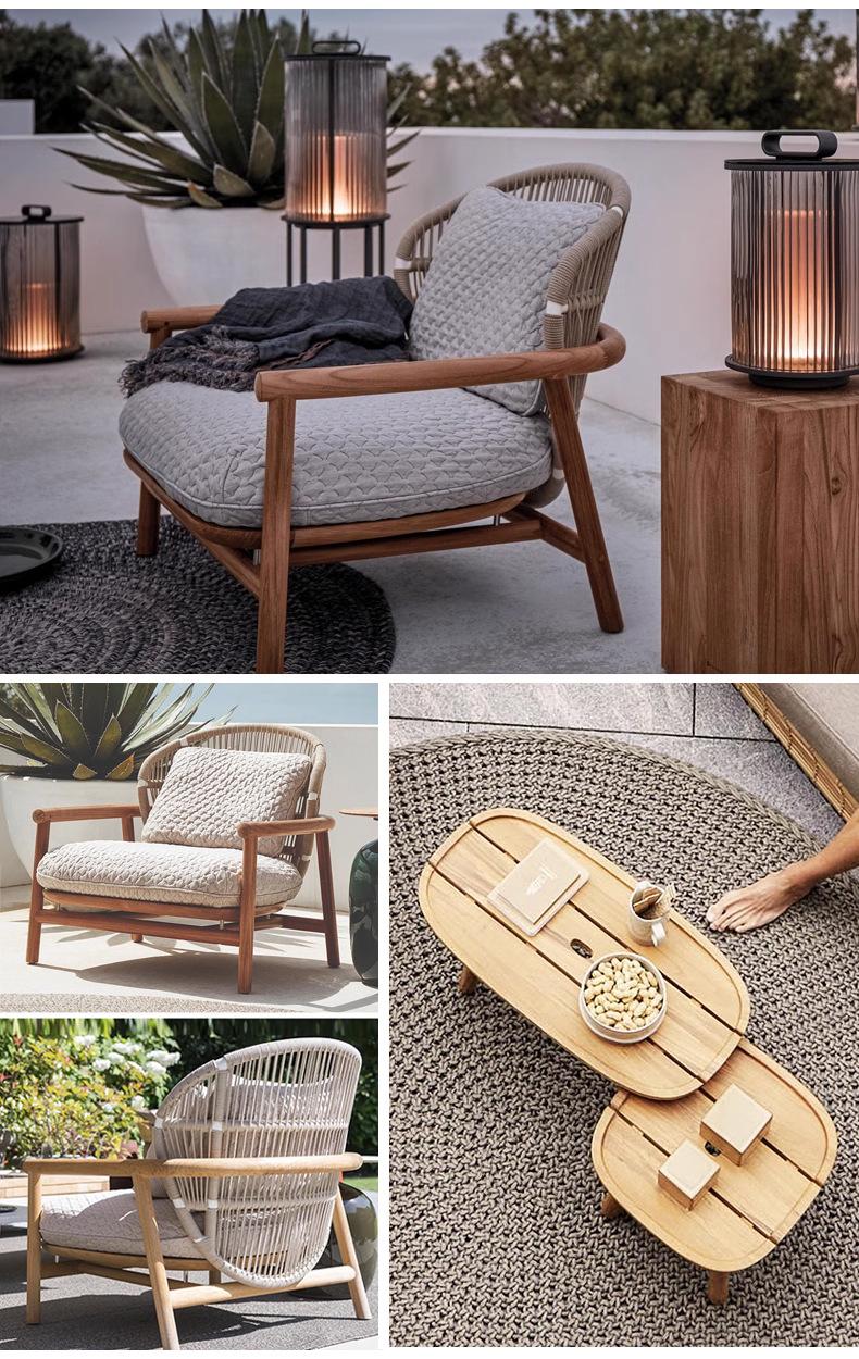 Sofá escandinavo personalizado de vime para áreas externas, sofá de madeira maciça de teca, combinação de sofá para residências e móveis para pátio