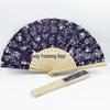Fábrica personalizado de madeira ventilador azul dobrável criativo publicidade ventilador de presente handmade de osso de madeira ventilador espanhol de pano