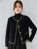 Novo Casaco Shenghong de Corrente Tecida Pesada, Lã Perfumada Pequena, Dupla Face, Preto e Dourado, Gola Redonda, Casaco Curto 15357