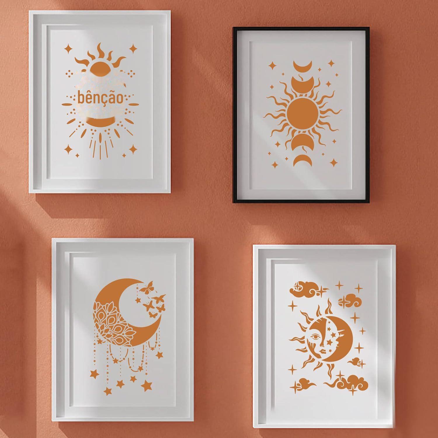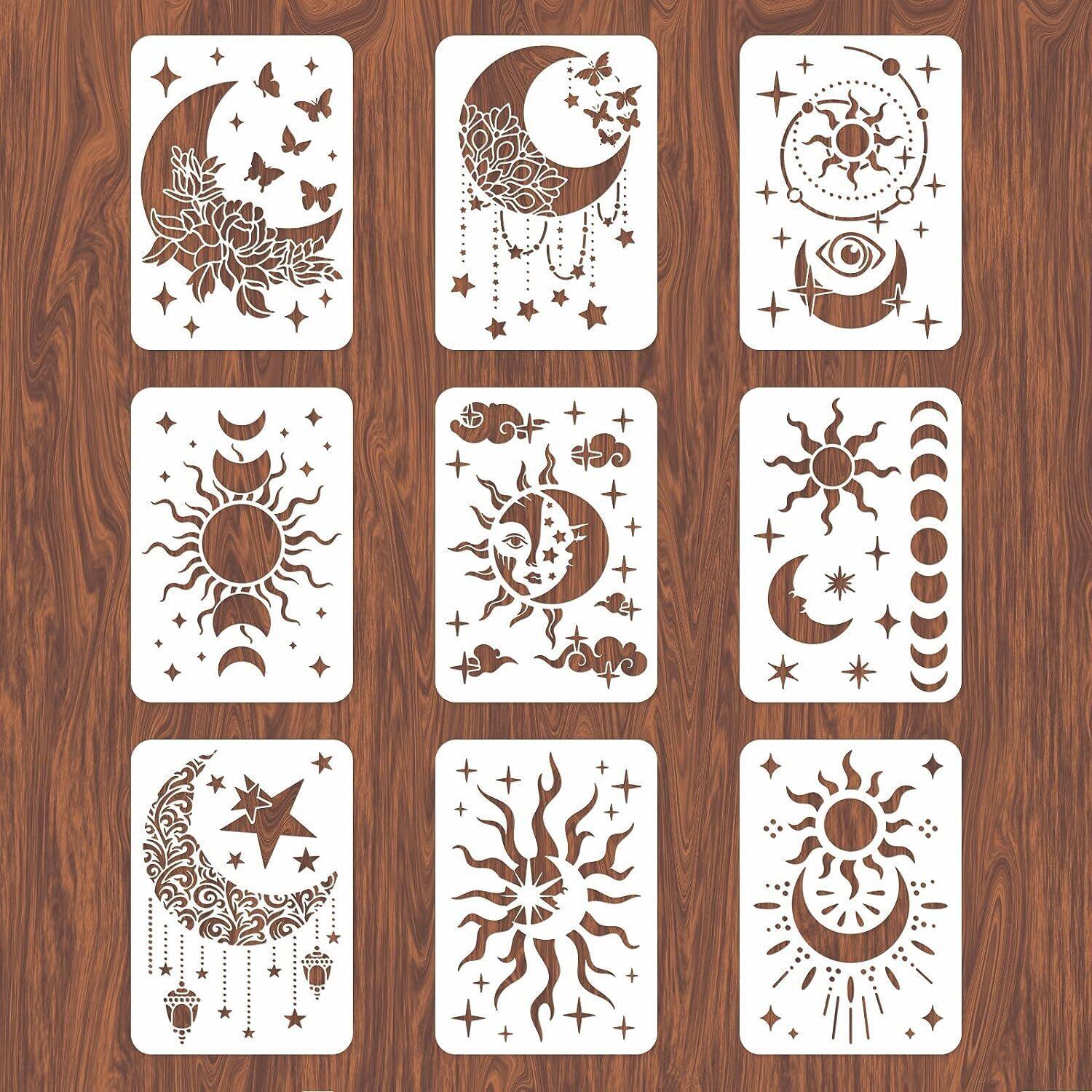 Cross-border novo Sun Moon estrela modelo de pintura criativa PET vazamento oco placa de impressão DIY pintado à mão graffiti spray molde