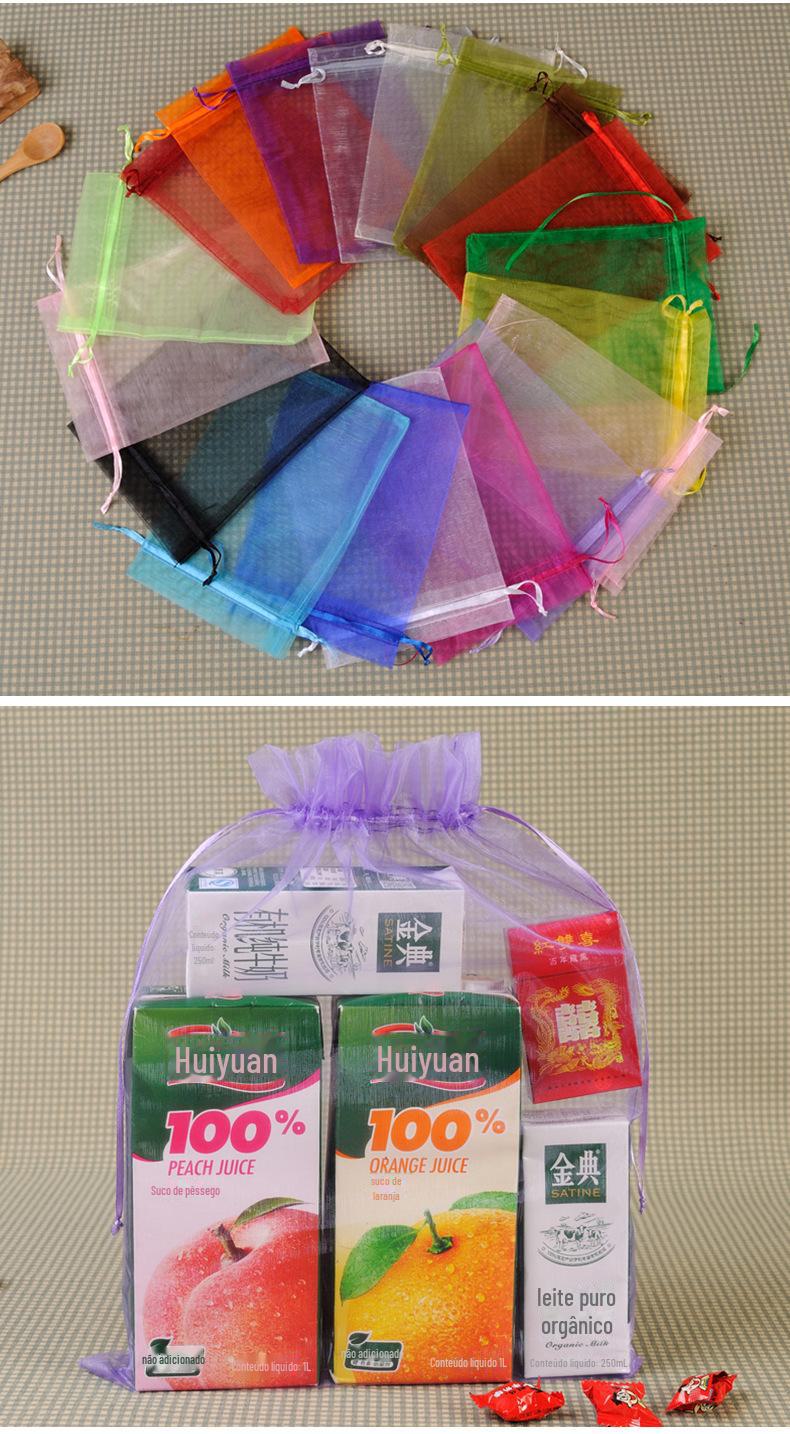 Fornecimento direto da fábrica em estoque saco de organza de cor sólida cordão de casamento doce saco de fio transparente saco de joias de presente
