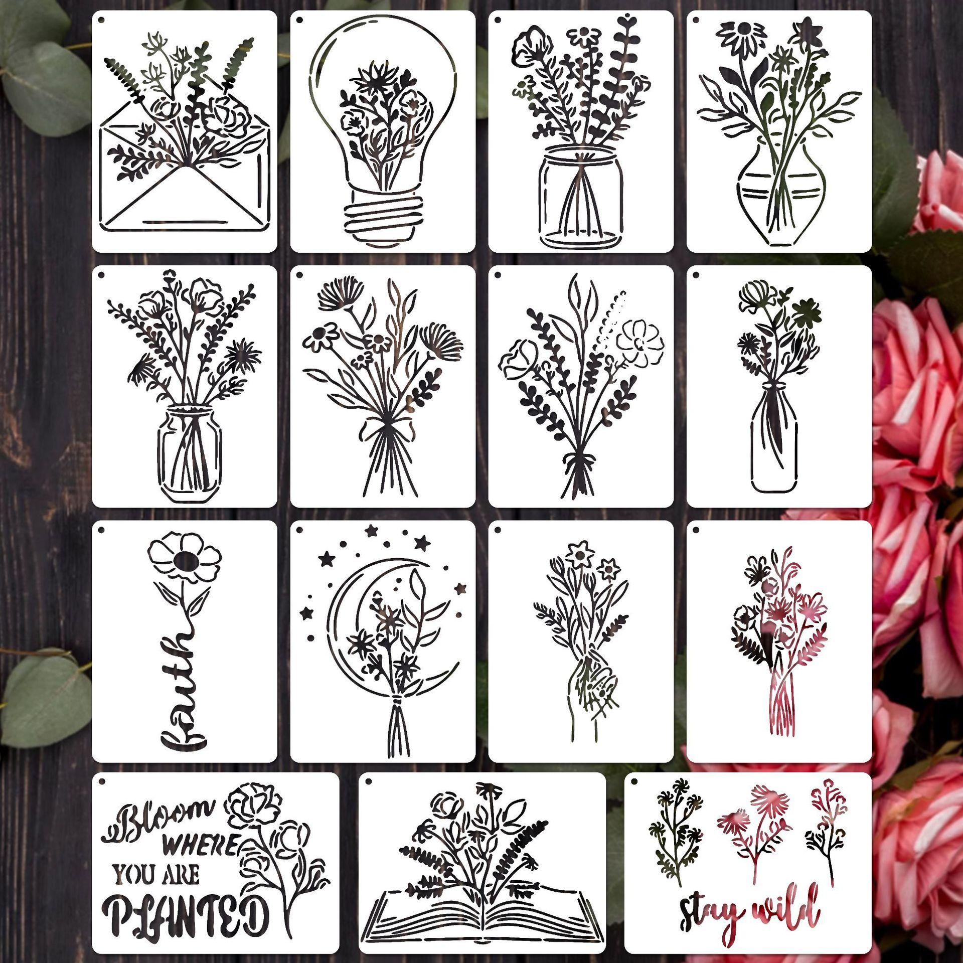 Modelo de pintura de flores e plantas criativas transfronteiriças PET vazamento oco Placa de impressão DIY pintado à mão grafite pintura spray pintura molde pintura auxiliar