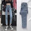 Moda Azul Rasgado Perna Jeans Mulheres Cintura Alta Stretch Apertado Calças de lápis cropped
