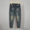 Calças femininas primavera e verão, novas calças jeans brancas estilo coreano, slim fit, cropped, ferrugem, elásticas, femininas