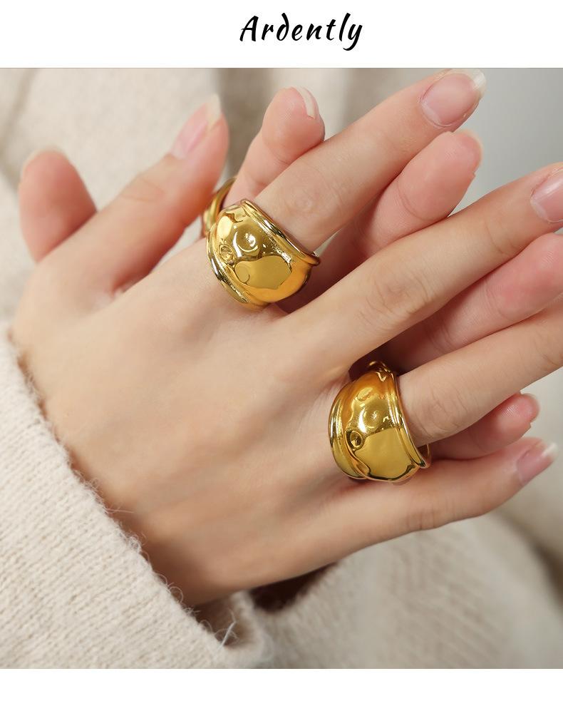 Jóias retrô transfronteiriças anel largo tridimensional exagerado personalidade geométrico aço titânio ouro 18k anel de mão de rosto atacado
