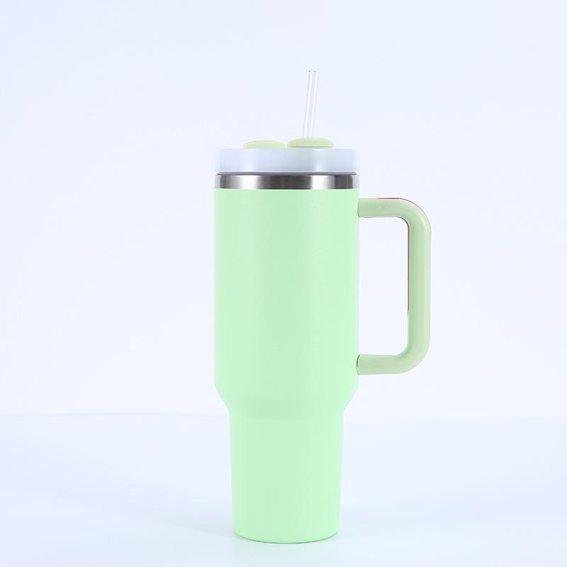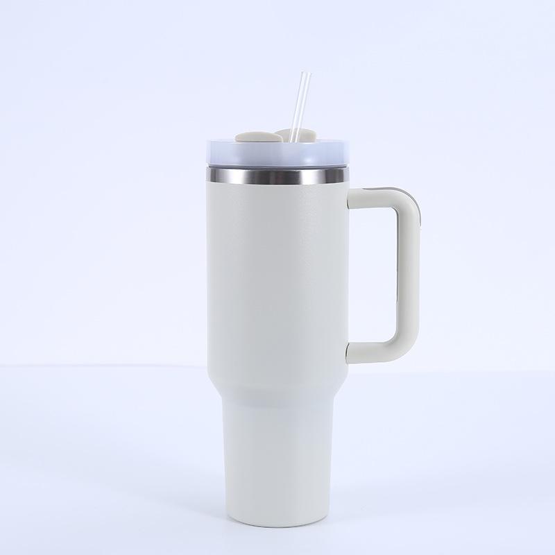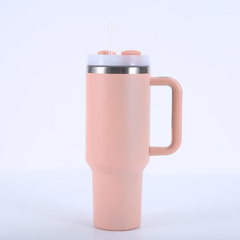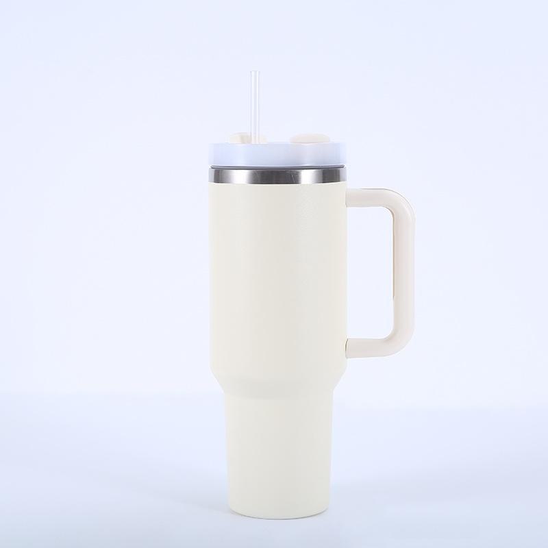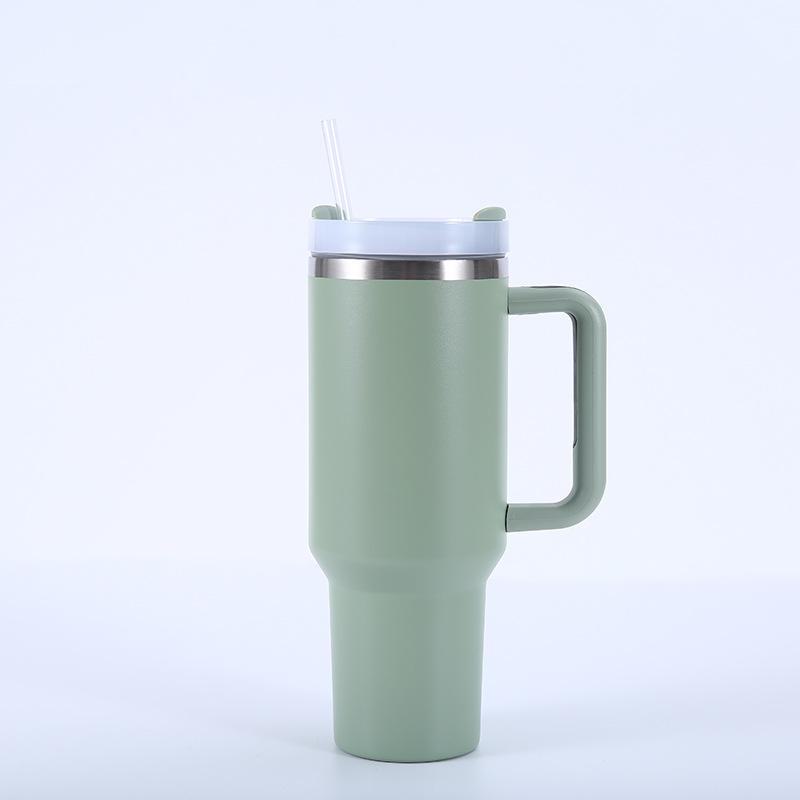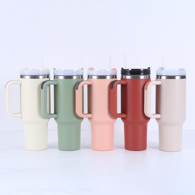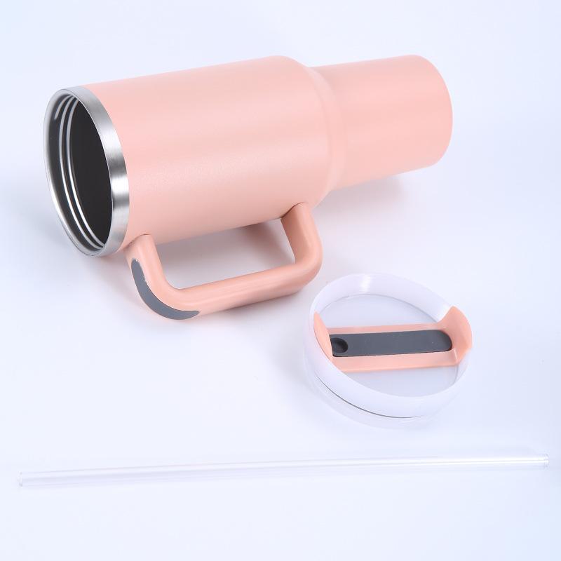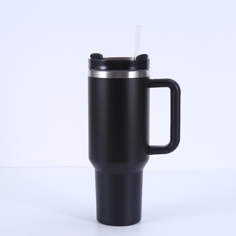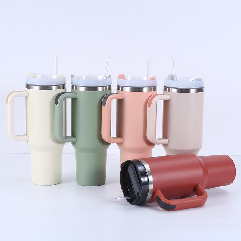Copo de cerveja a vácuo de aço inoxidável com alça de 40 onças para carro, com canudo, copo de gelo portátil para carro, atacado