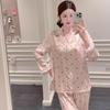 Calças Simples Novas Ins Pijama Fino de Seda Gelo Feminino Solto de Manga Comprida Longo Conjunto de Roupa de Casa de Alta Qualidade Atacado