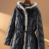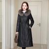 Jaqueta de Couro Genuíno de Pele de Cabra Nova 2025 de Comprimento Médio Feminina Preta Versátil Modeladora Jaqueta Haining