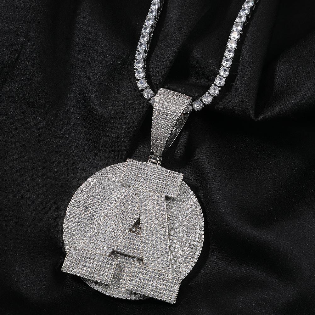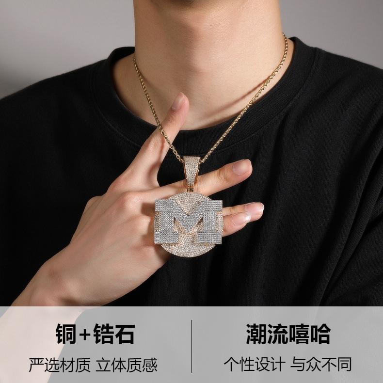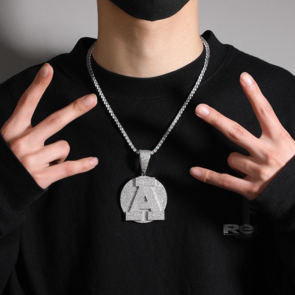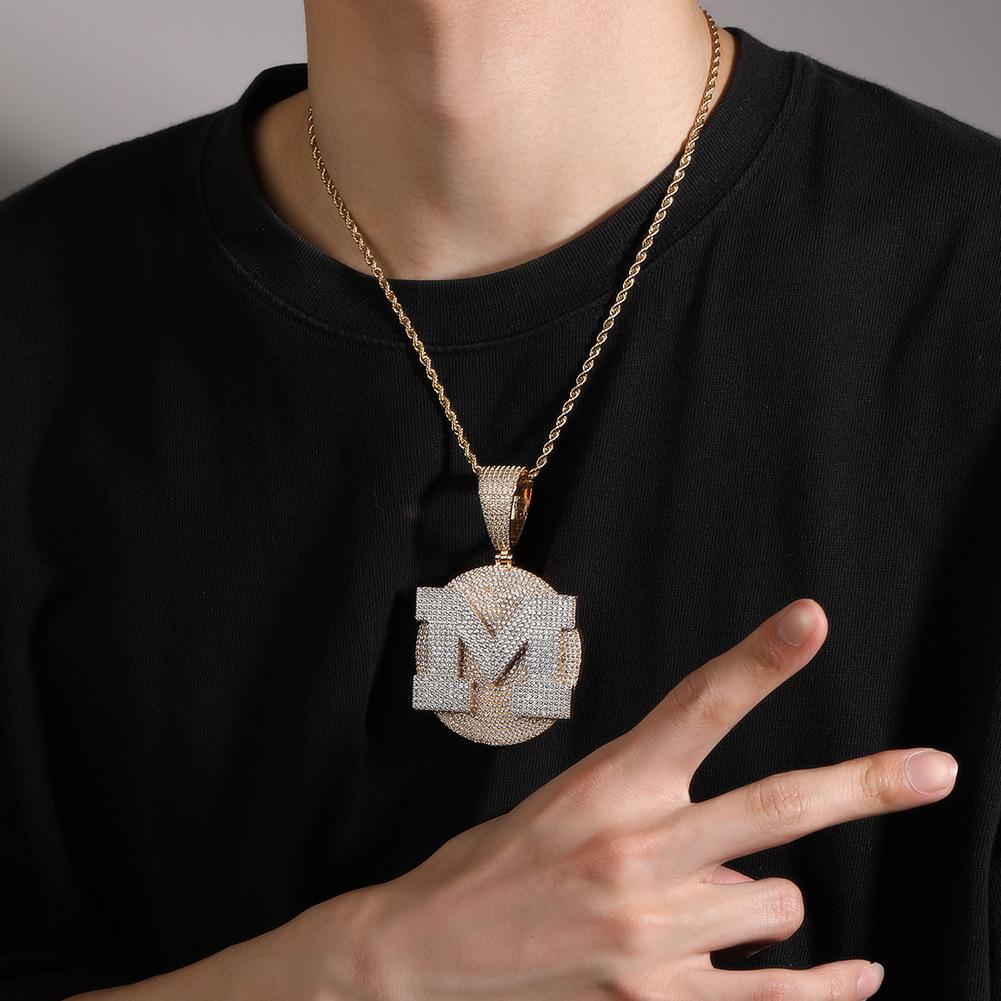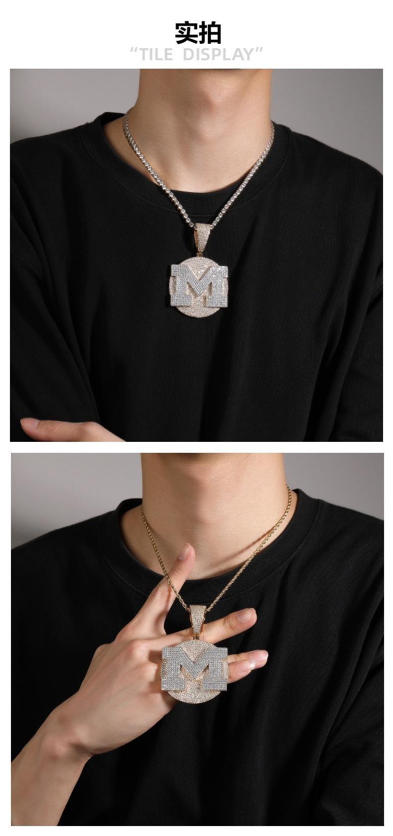 Colar Masculino Europeu e Americano Hip-Hop com Pingente Personalizado de Letra Grande com Placa de Base Redonda Cravejada de Diamantes