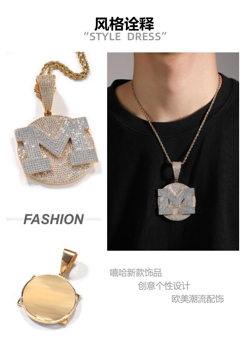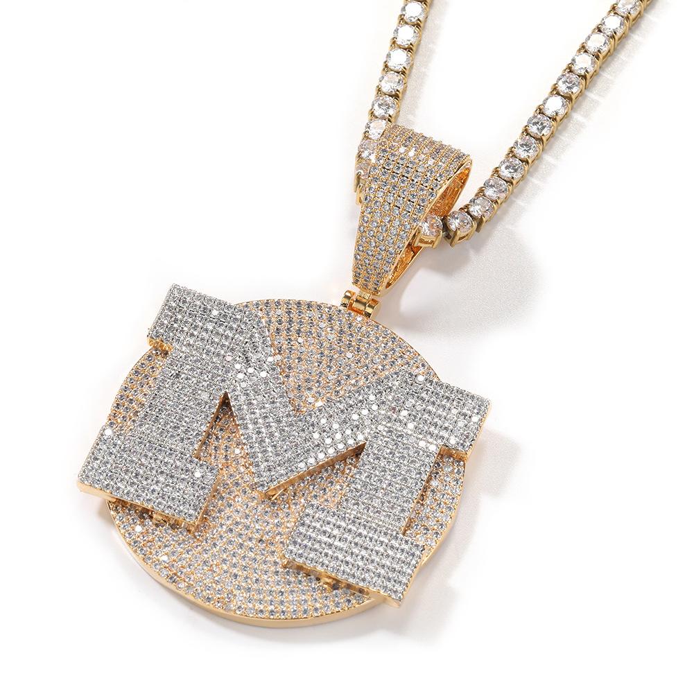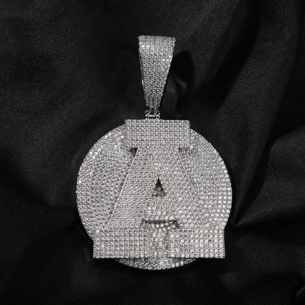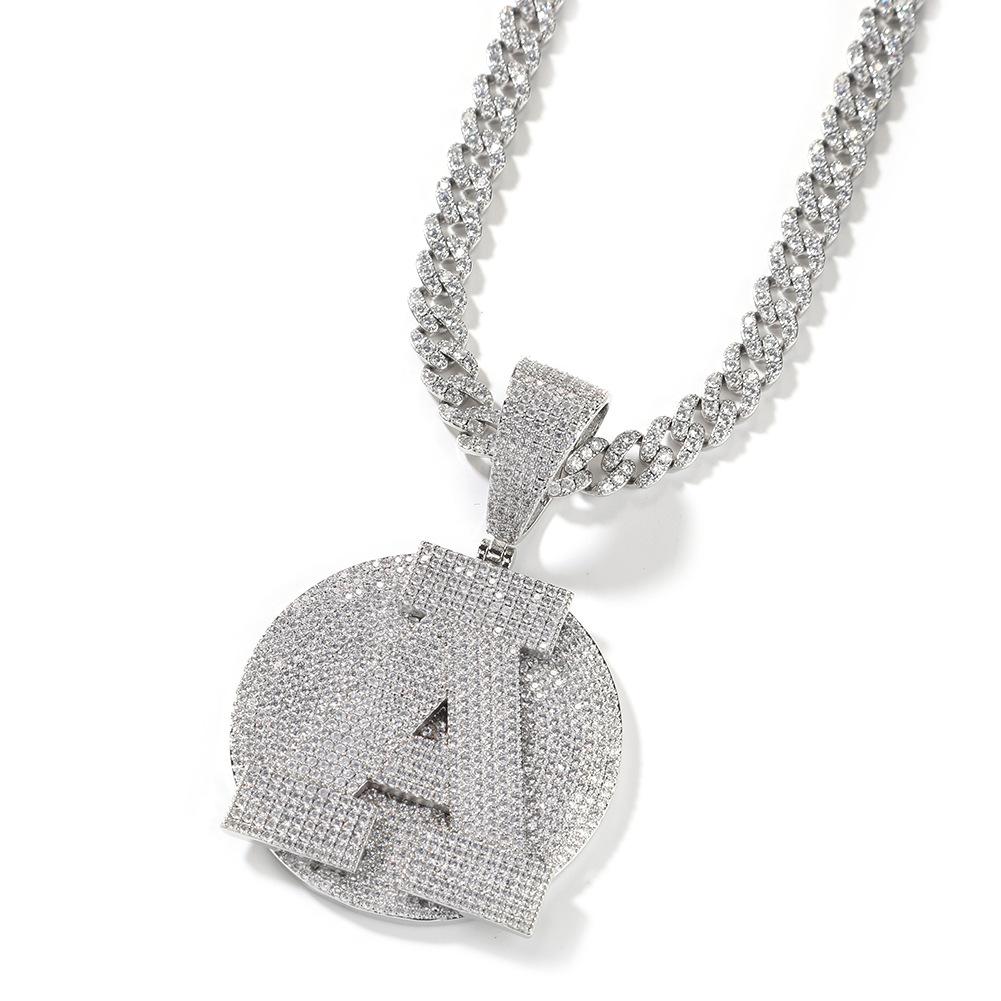 Colar Masculino Europeu e Americano Hip-Hop com Pingente Personalizado de Letra Grande com Placa de Base Redonda Cravejada de Diamantes
