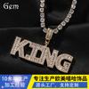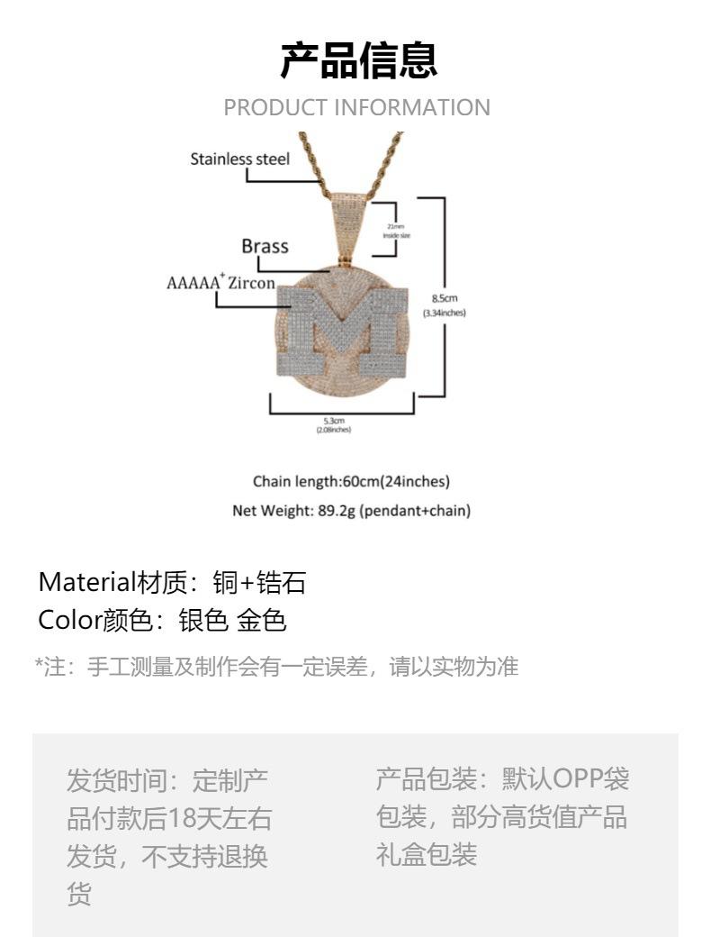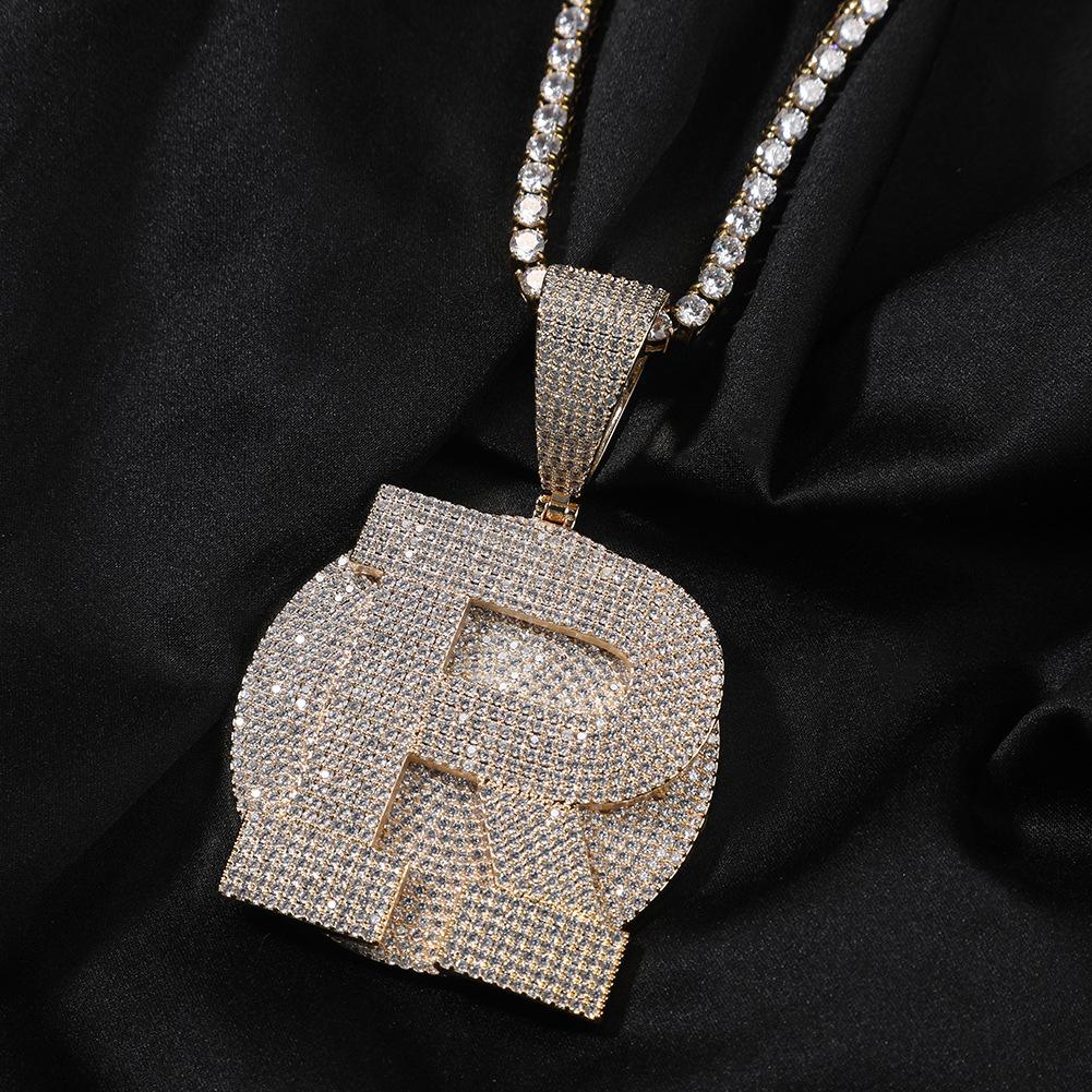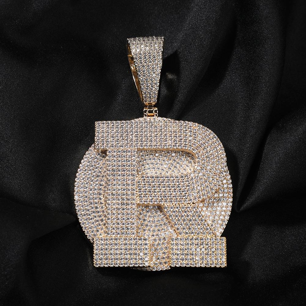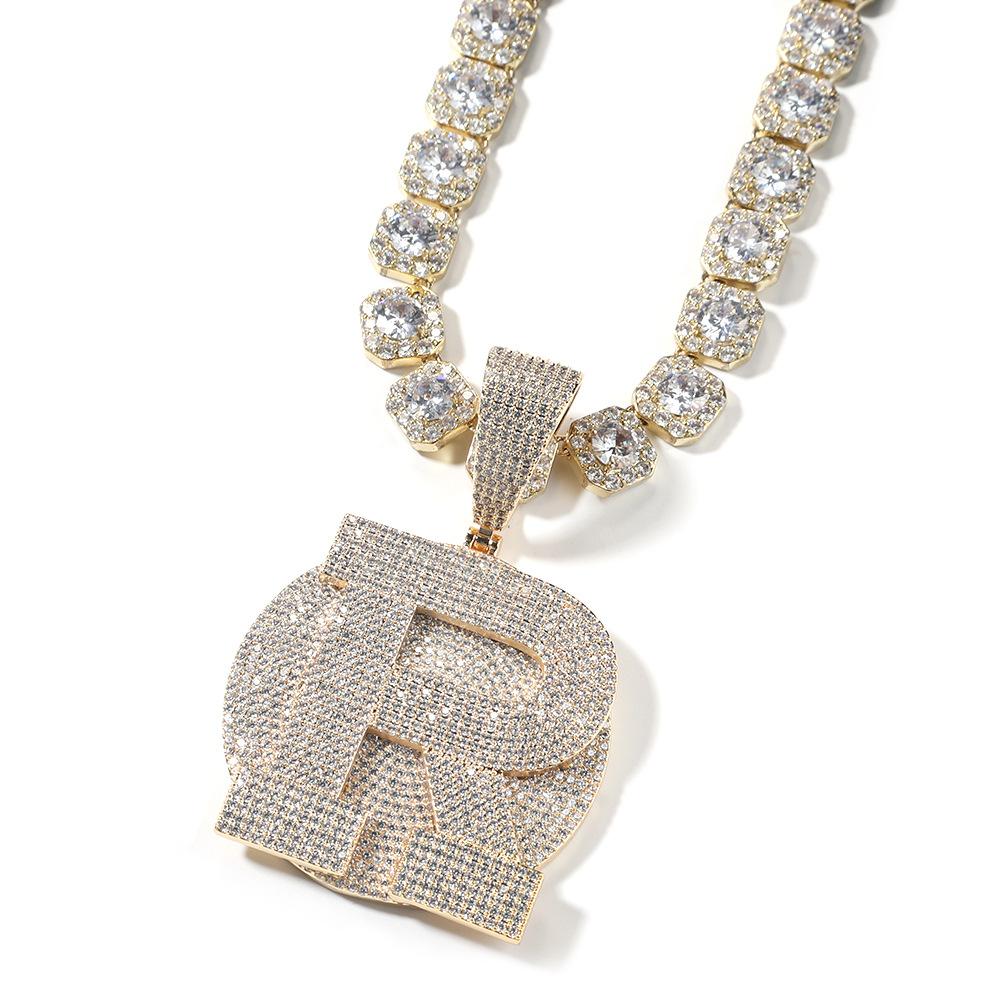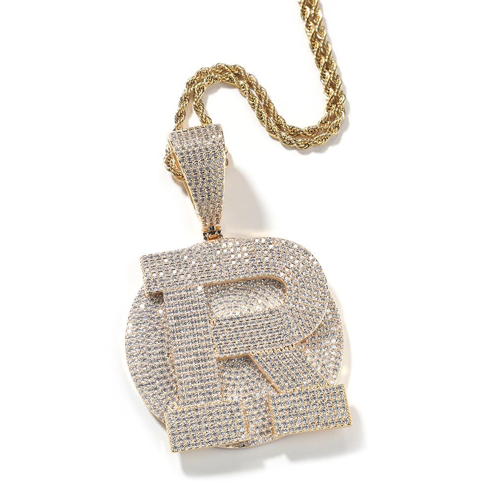 Colar Masculino Europeu e Americano Hip-Hop com Pingente Personalizado de Letra Grande com Placa de Base Redonda Cravejada de Diamantes