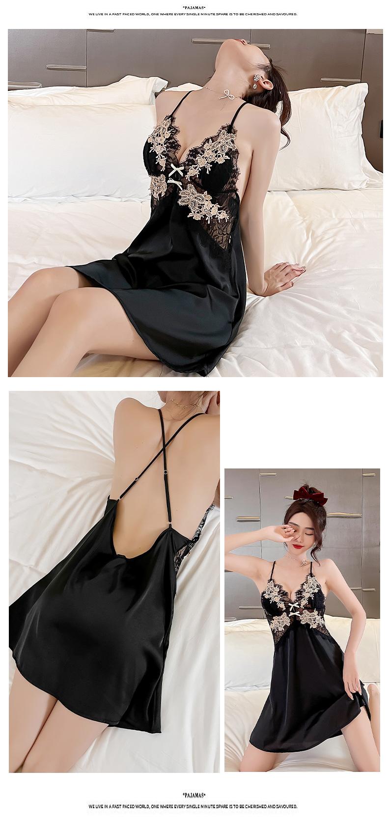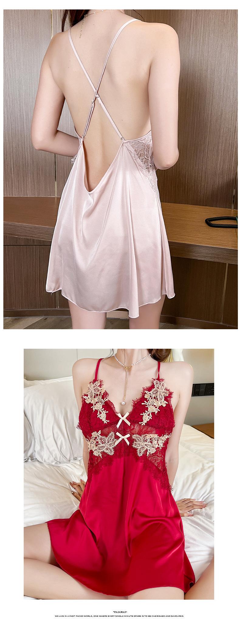 Camisola Suspender Fresca, Respirável e Confortável, Sexy e Pura, Sem Costas, Camisola Suspender Feminina com Aplicações de Seda Sintética, Camisola de Verão
