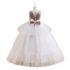 Novo vestido de princesa infantil, vestido bordado sem costas com laço grande, vestido de casamento para meninas, vestido de passarela