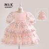 Amazon europa e américa novo grande vestido de princesa das crianças saia longa malha tule menina desempenho piano vestido