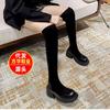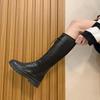 Distintivo Botas de Cavaleiro de Solado Grosso Novo, Botas Altas de Couro, Botas Longas, Botas Populares de Outono e Inverno 2025, Sapatos Femininos Versáteis