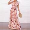 2025 Novo Vestido Longo de Verão Feminino Novo Transfronteiriço para Exportação Estampa Floral Ombro a Ombro Splicing Europeu e Americano Sem Costas