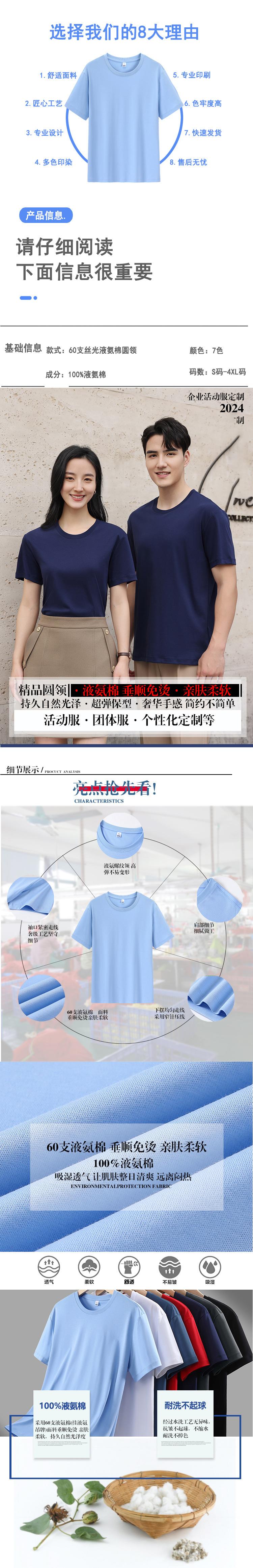 Camiseta de algodão mercerizado com amônia líquida 60 de gola redonda camiseta publicitária personalizada bordado de logotipo camiseta cultural macacão classe de compra