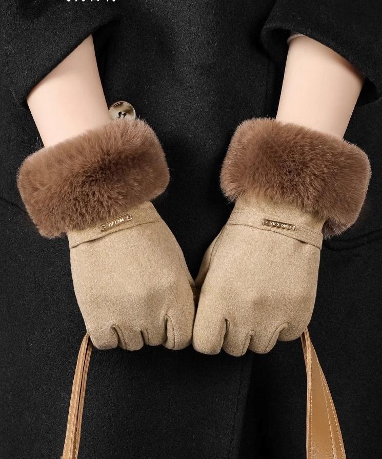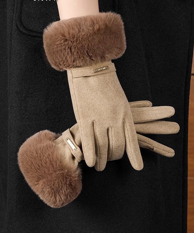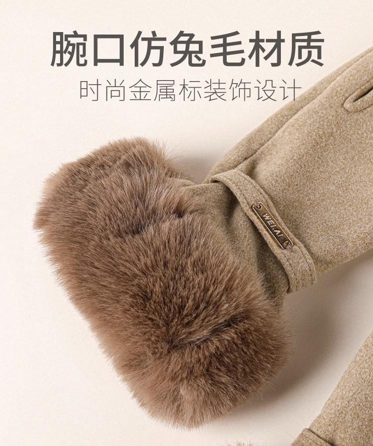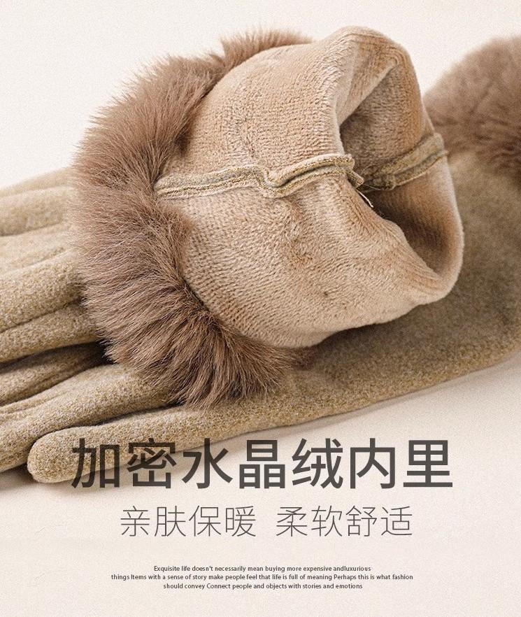 Luvas de Pelúcia Atacado para Mulheres no Outono e Inverno Veludo Alemão Estilo Coreano Luvas de Ciclismo Sem Dedos Tela Sensível ao Toque Mais Veludo Espessas Quentes