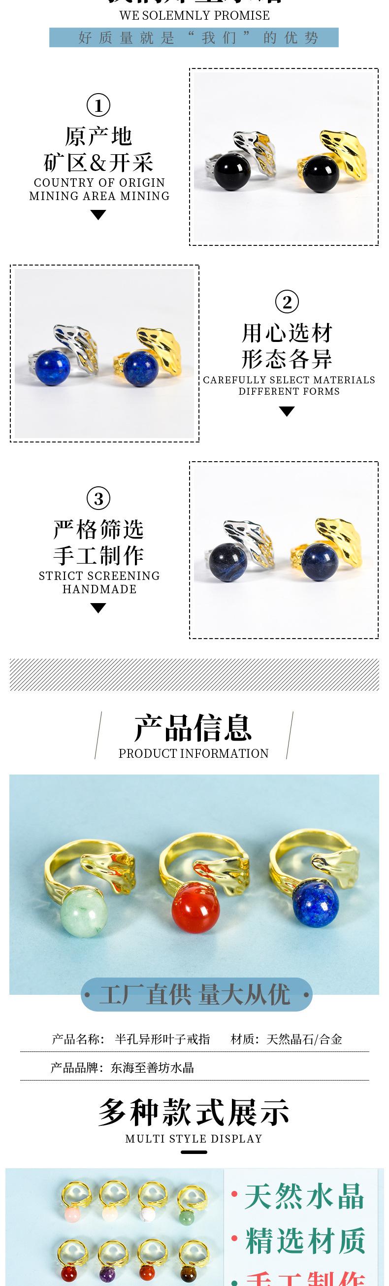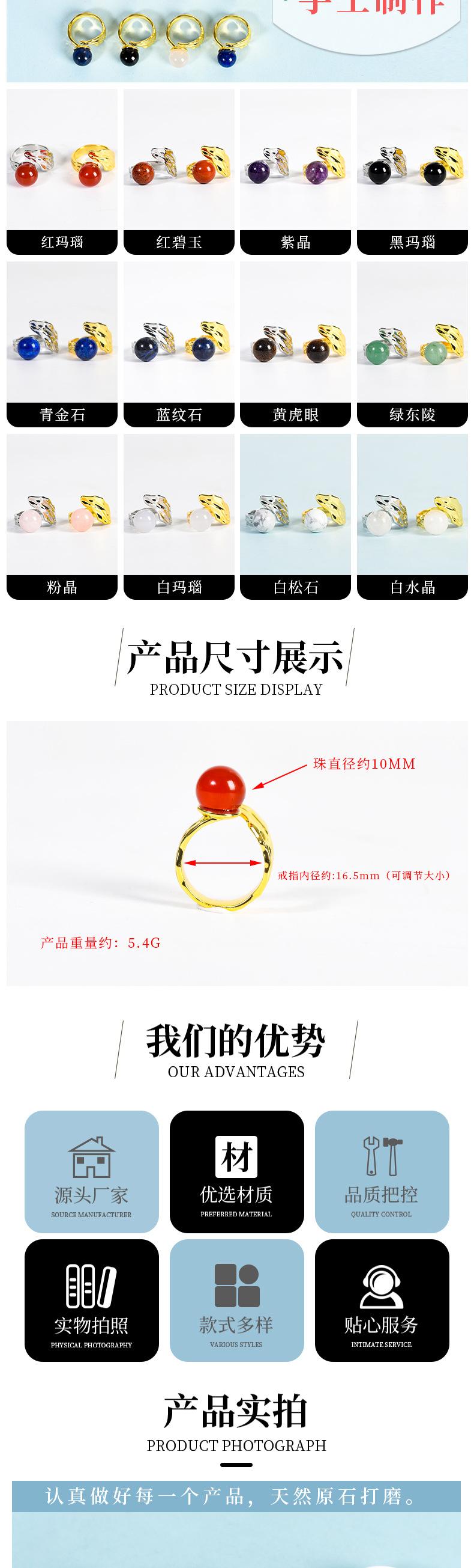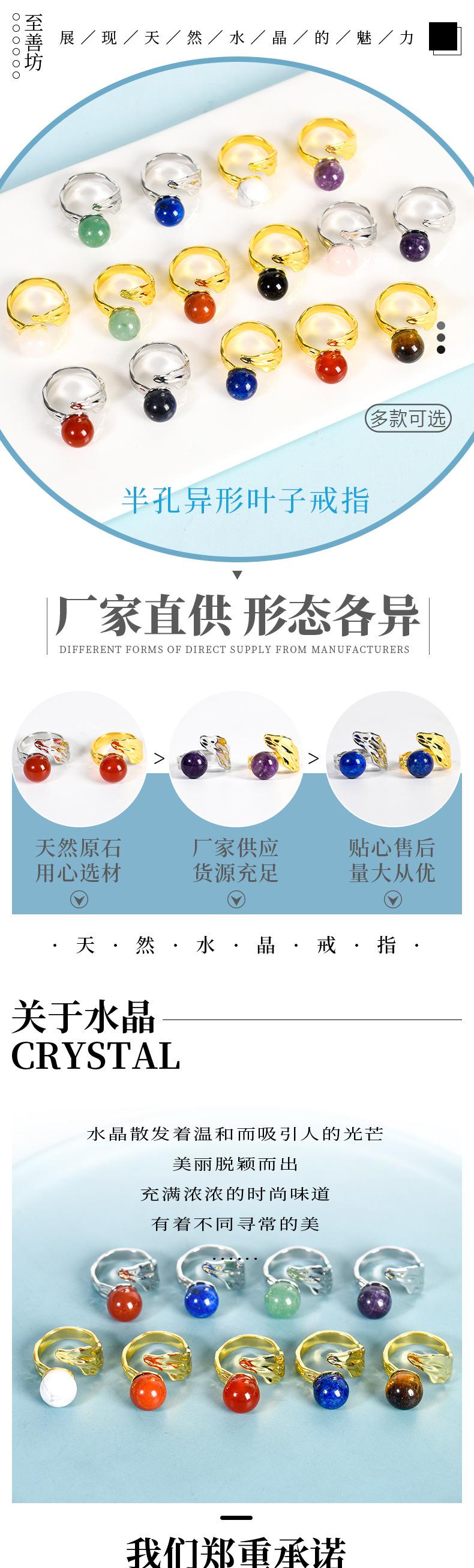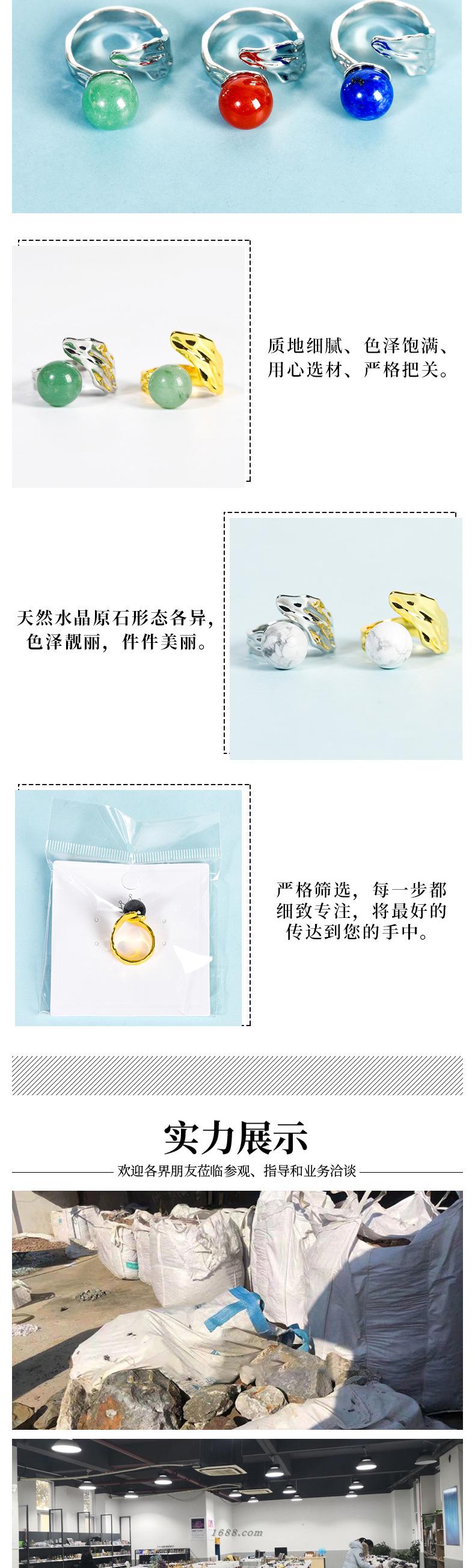 Natural Crystal meio buraco em forma de anel cross-border jade anel handmade redondo grânulo cristal cross-border joias quentes atacado
