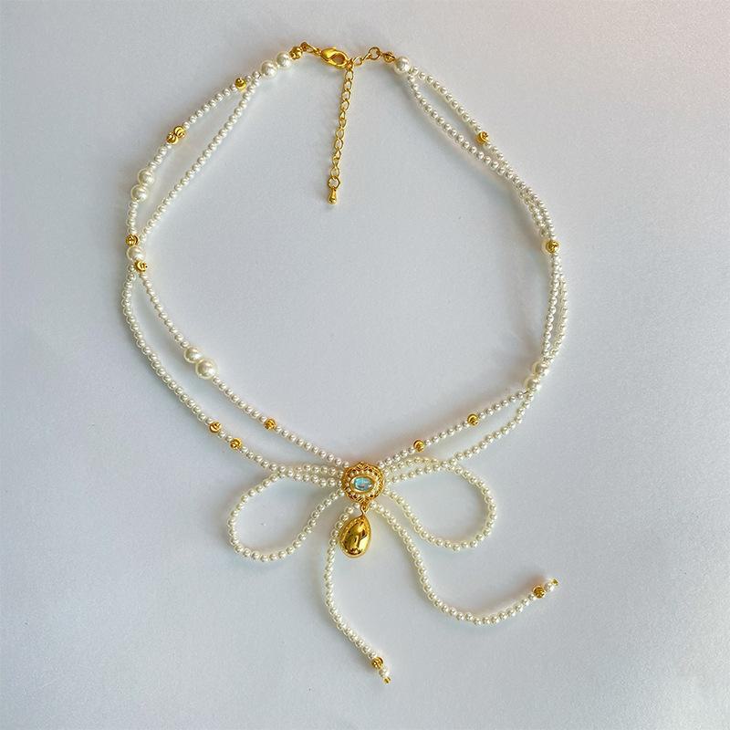 2024 Novo Design de Moda de Nicho Japonês e Coreano High-end Doce Colar Clavícula Corrente Pérola Laço Colar Feminino