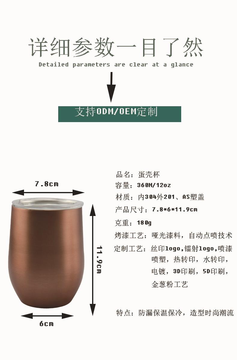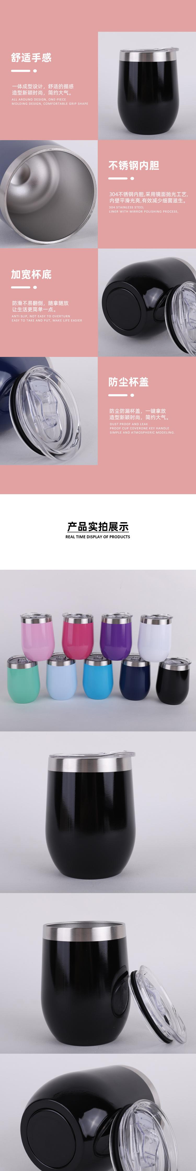Cross-border 12oz copo de água isolado aço inoxidável Vinho Tinto vácuo de cerveja em forma de U 304 ovo casca de copo