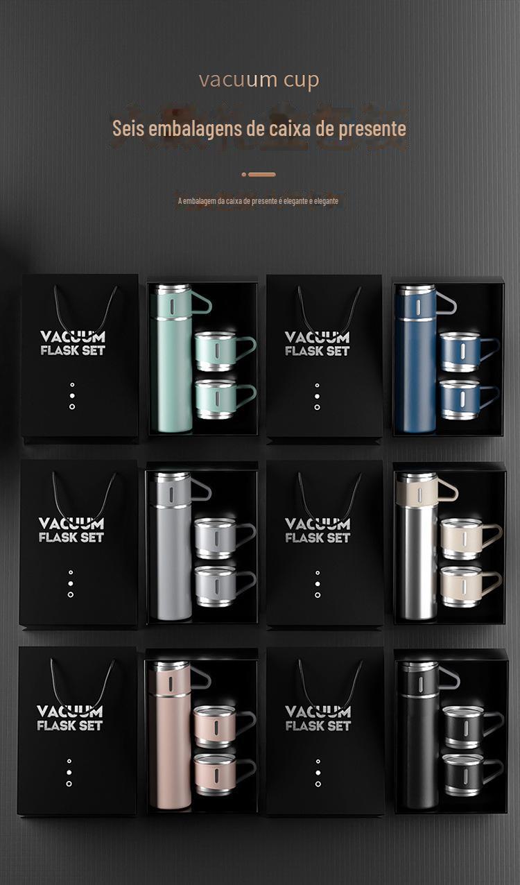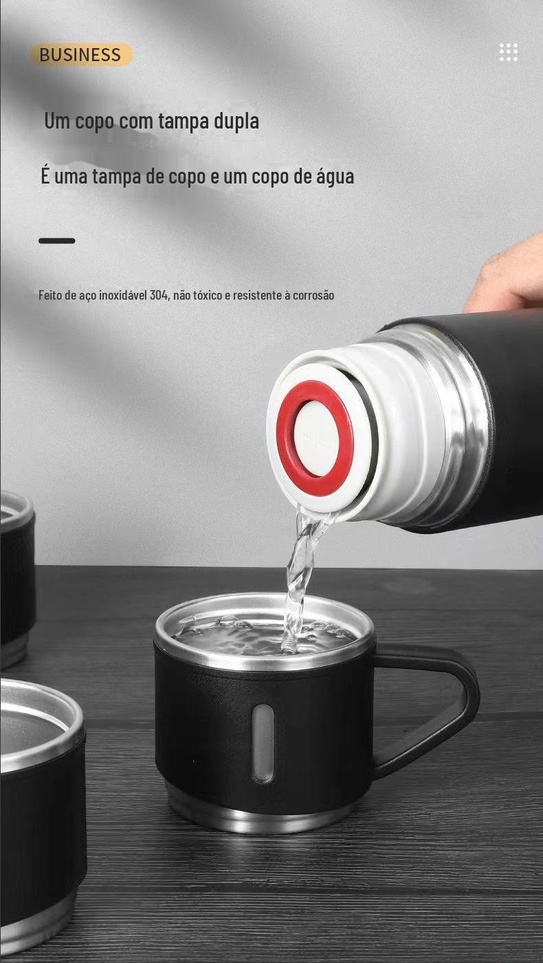 304 aço inoxidável novo conjunto de garrafas térmicas copo de dupla tampa de negócios copo copo caixa de presente copo lettering logotipo copo