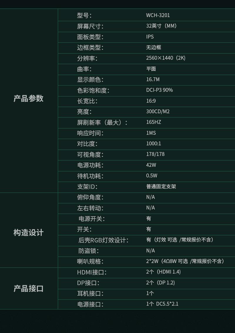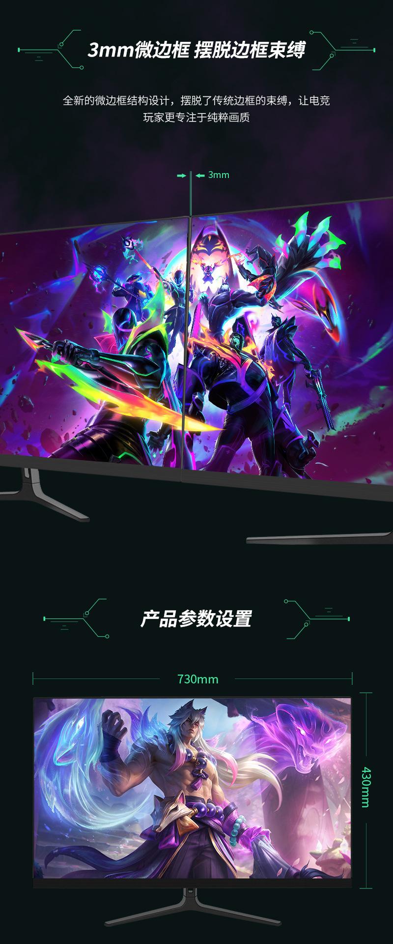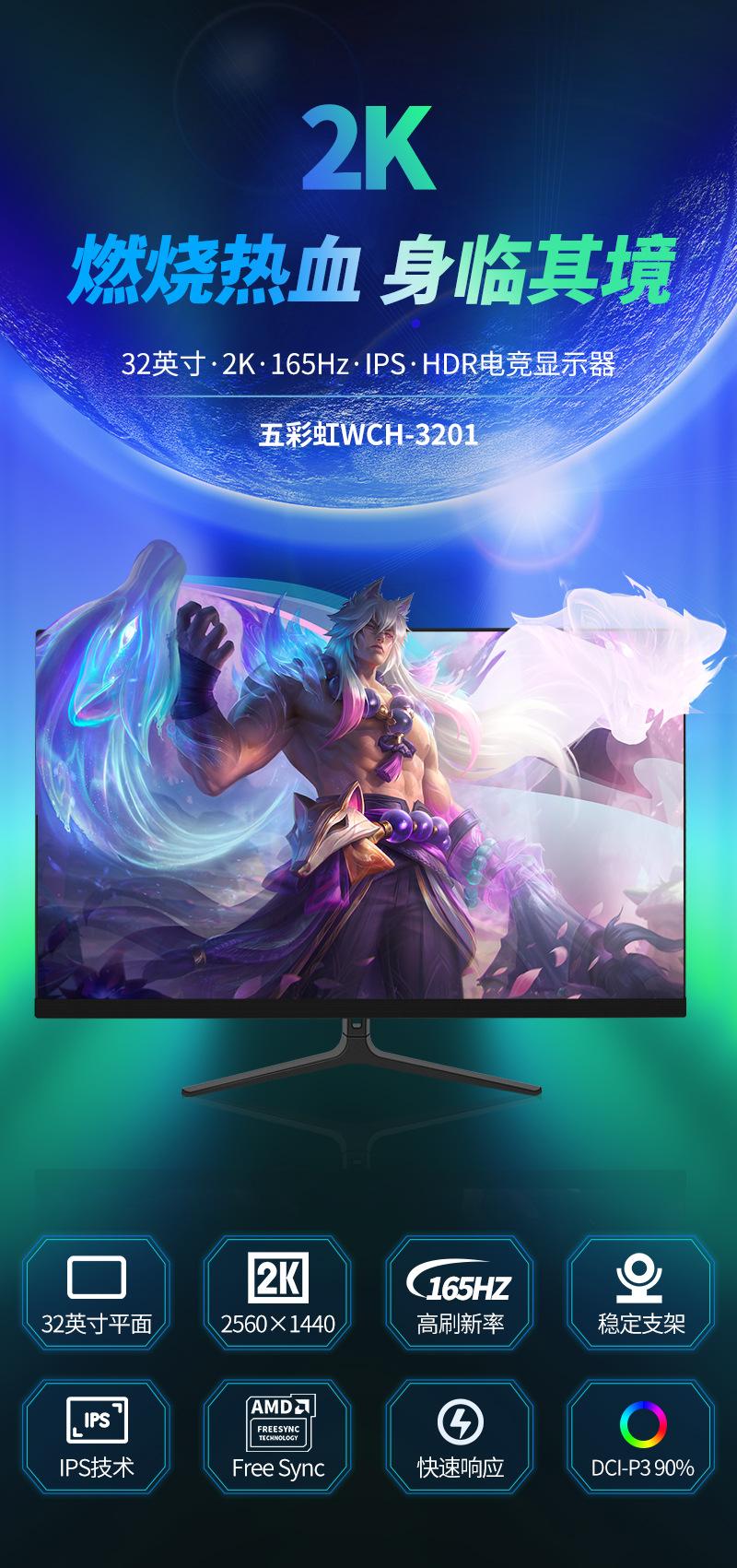 Cinco arco-íris 32 polegadas face-to-face computador sem moldura LCD 2K165HZ ultra-fino Game e-sports Display