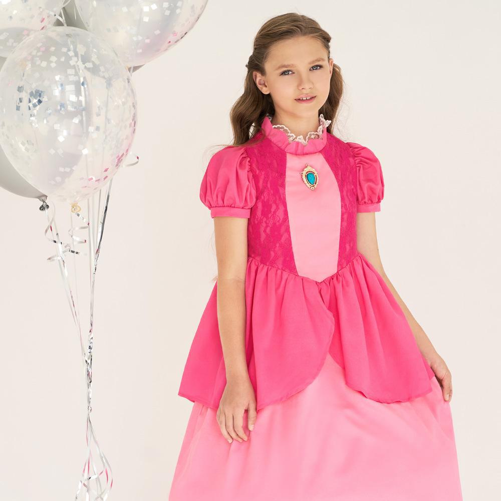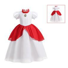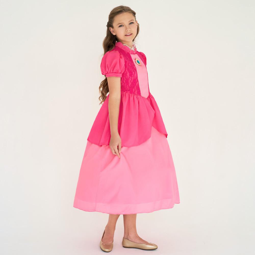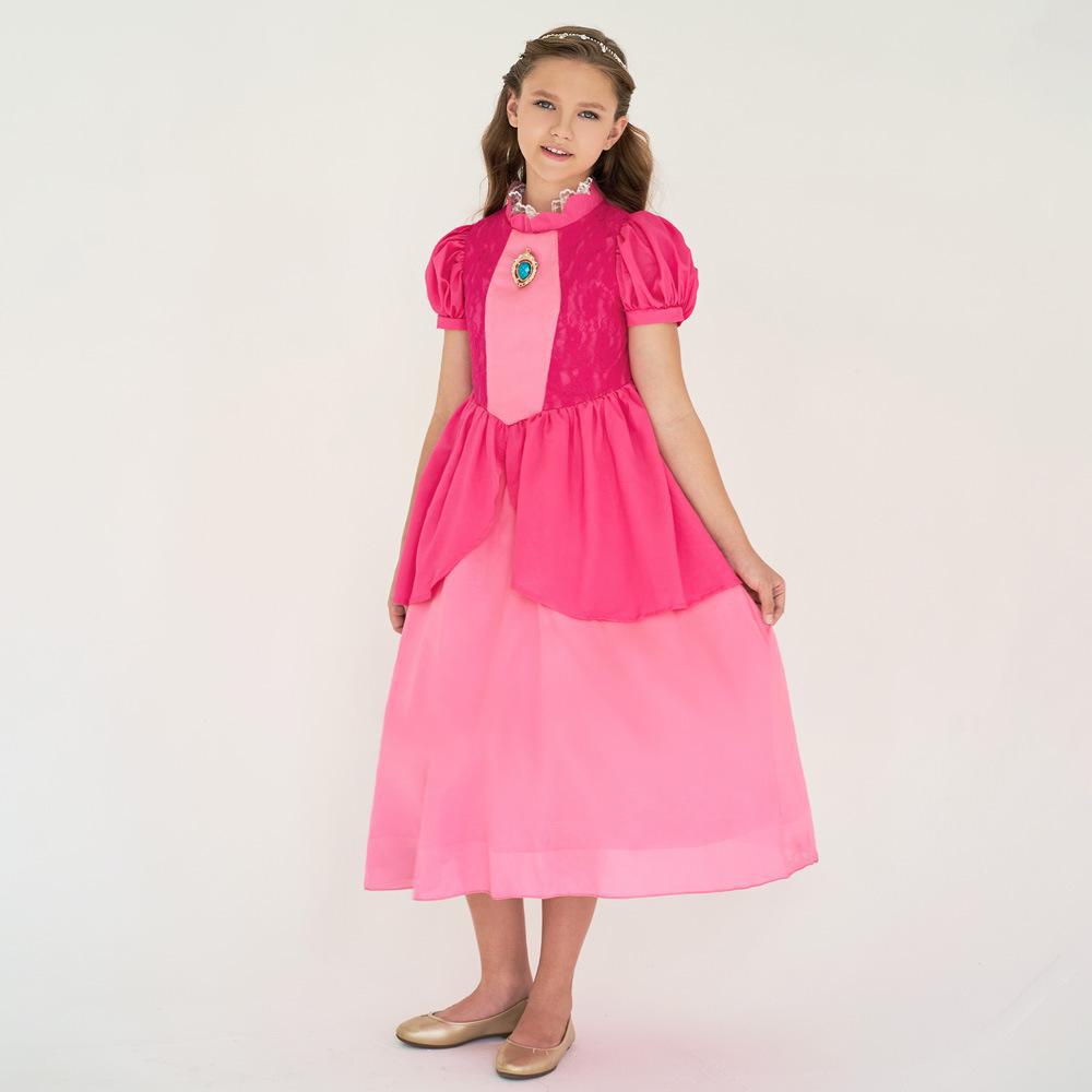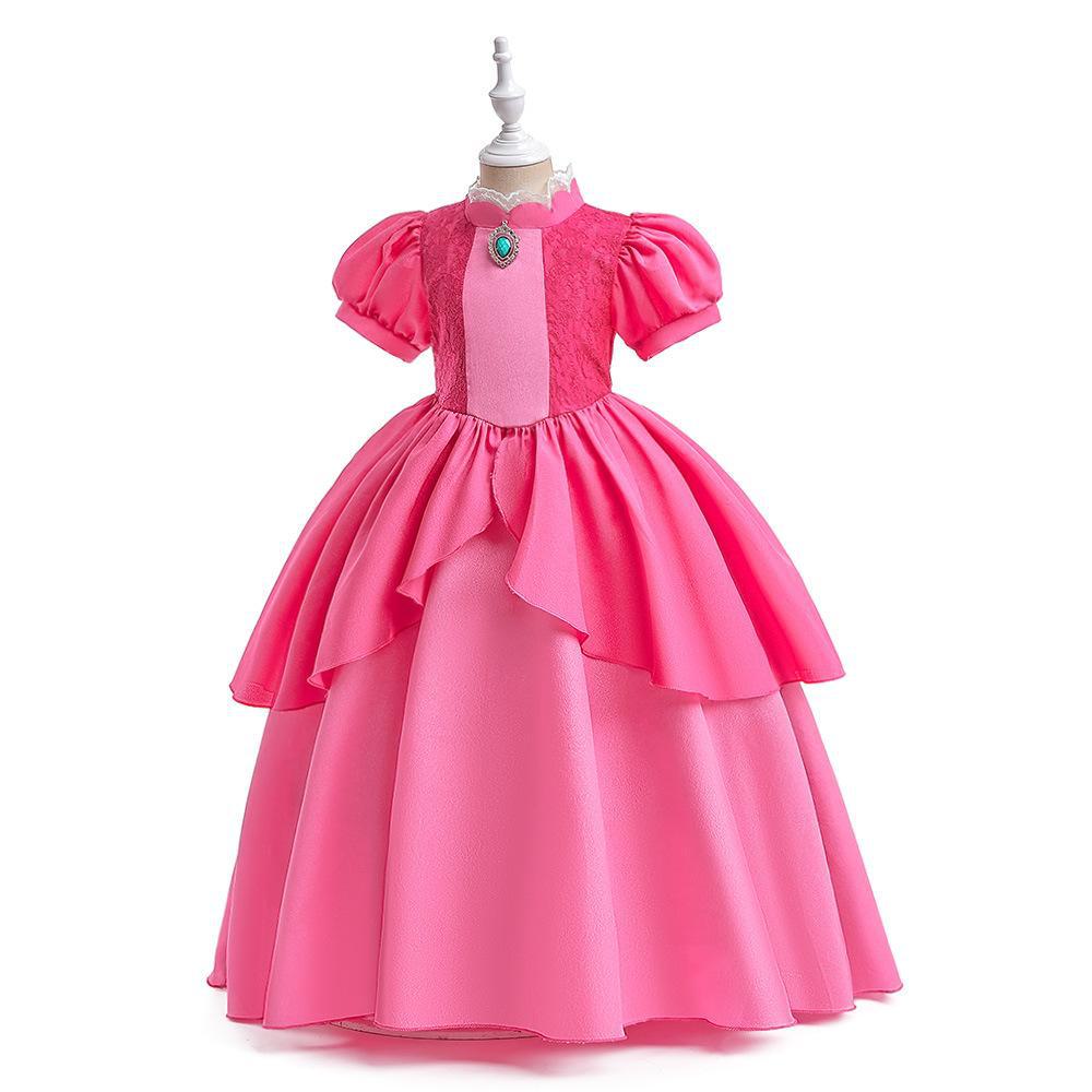 Vestido de meninas cosplay super mario vestido de princesa renda emenda manga bufante vestido infantil