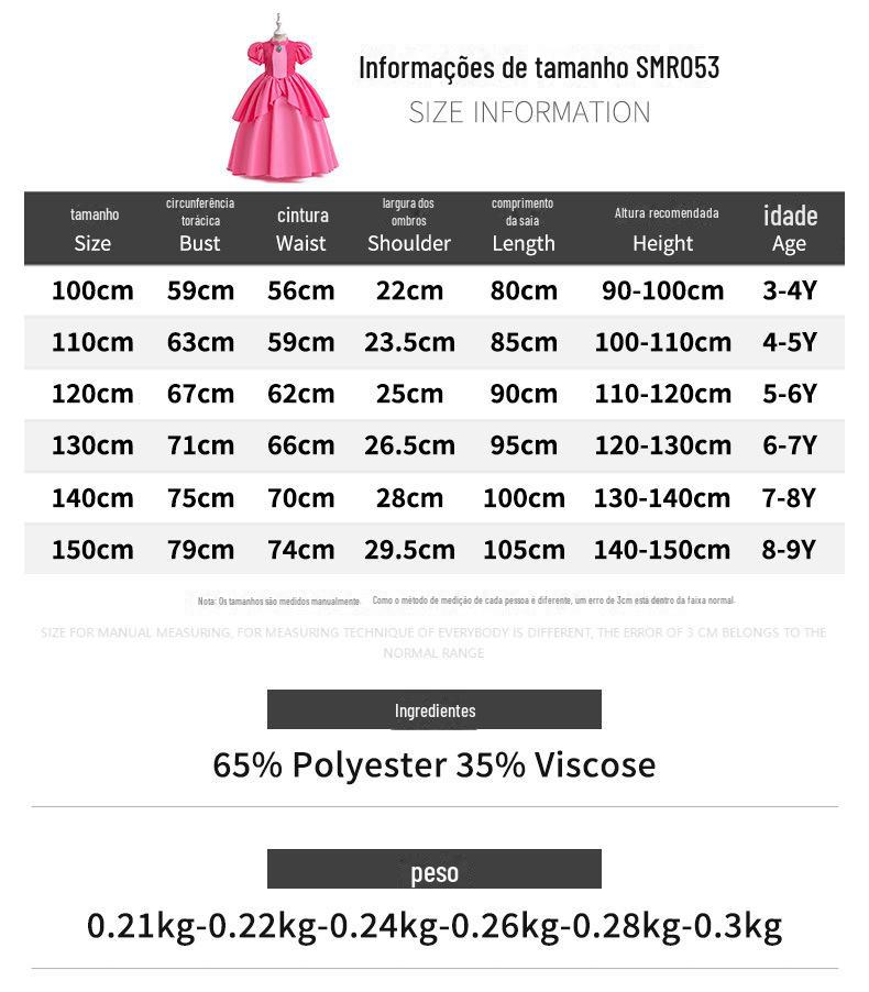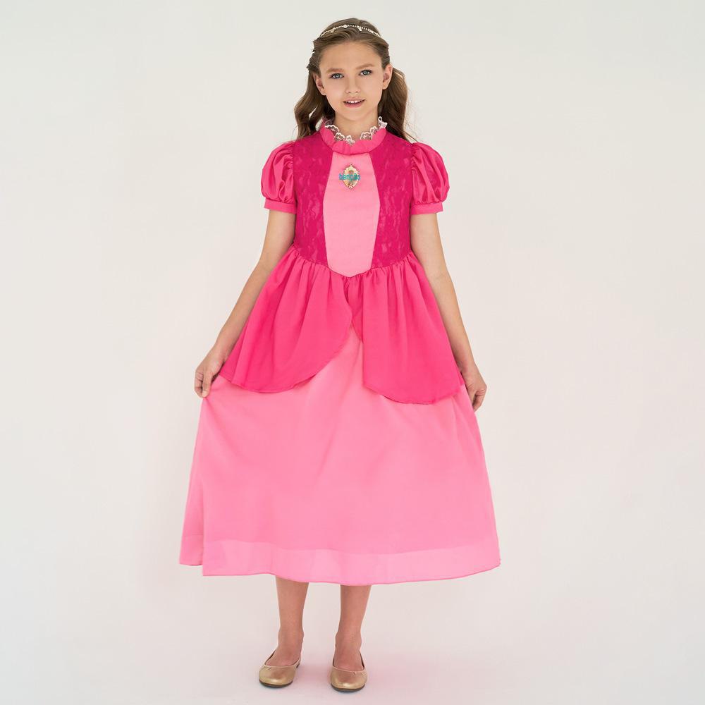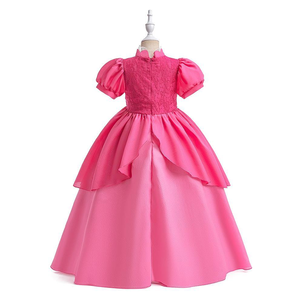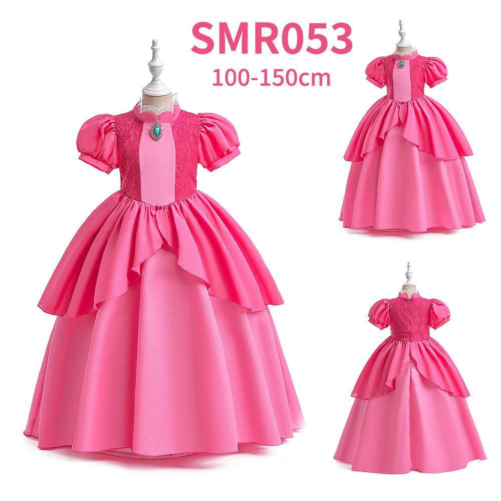 Vestido de meninas cosplay super mario vestido de princesa renda emenda manga bufante vestido infantil