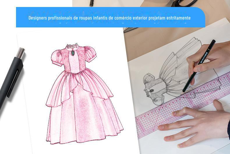 Meninas vestido Cinderela fofo vestido de princesa renda emenda malha vestido infantil Amazon traje de desempenho