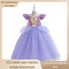 Amazon meninas vestido de princesa congelado sofia vestido de princesa rapunzel cosplay vestido infantil inchado