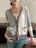 High-end chique exclusivo nicho cardigan casaco de malha feminina primavera e outono listrado cor de contraste pit suéter fino solto