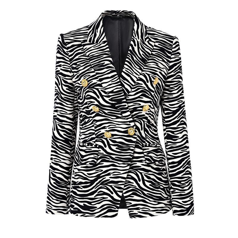2023 outono e inverno europeu e americano passarela nova zebra padrão slim fit terno pequeno cintura apertada cross-border terno commuter top feminino