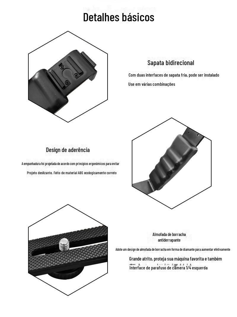 Pode ser usado em qualquer câmera 120 ou 135, câmera DV, com duas interfaces de sapata, pode ser instalada em uma variedade de combinações.