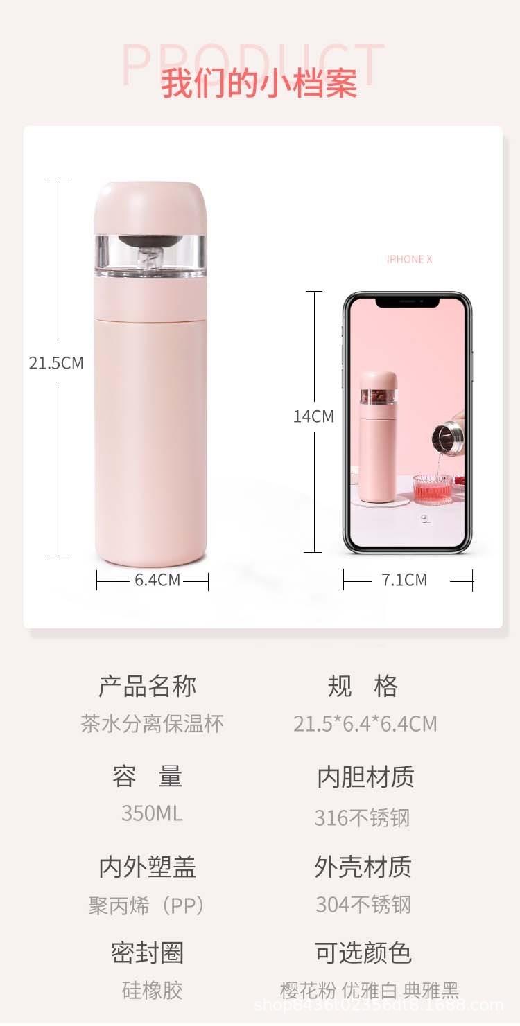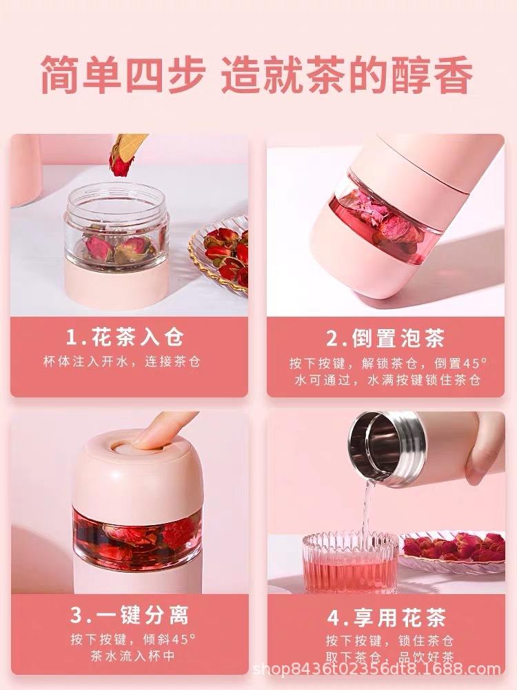 Copo para Chá de Luxo Leve com Separador de Chá, Xícara de Chá, Copo Térmico de Aço Inoxidável 316, Criativo, Portátil, Estilo Quente 2025, Atacado Personalizado